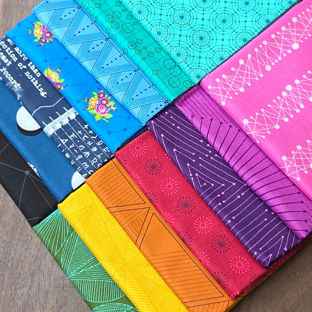 • Fat quarter pack includes one fat quarter (20" x 22") each of 14 fabrics in the collection.
