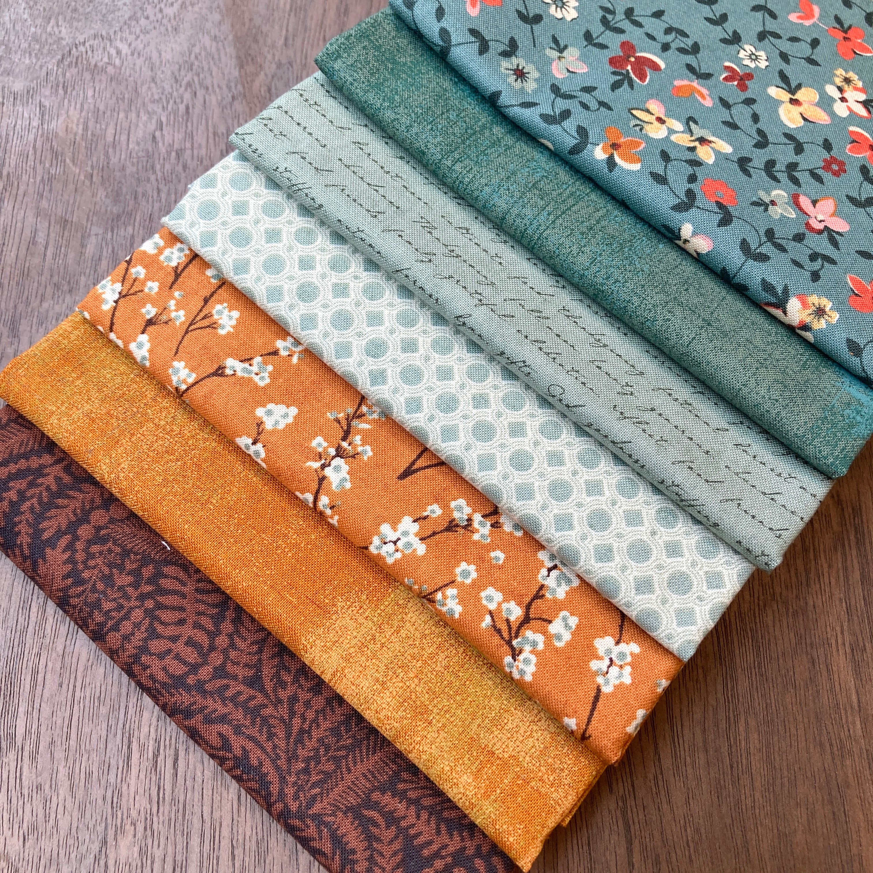 Fat quarter pack includes one fat quarter (20" x 22") each of 7 fabrics in the collection.