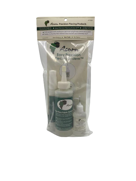 Acorn Precision Piecing Products Easy Precision Piecing Starter Kit (Contains 4oz,118ML. Easy Press Fab bric Treatment, Easy Press Pen, & 1oz SeamAlign Gentle Hold Fabric Glue)