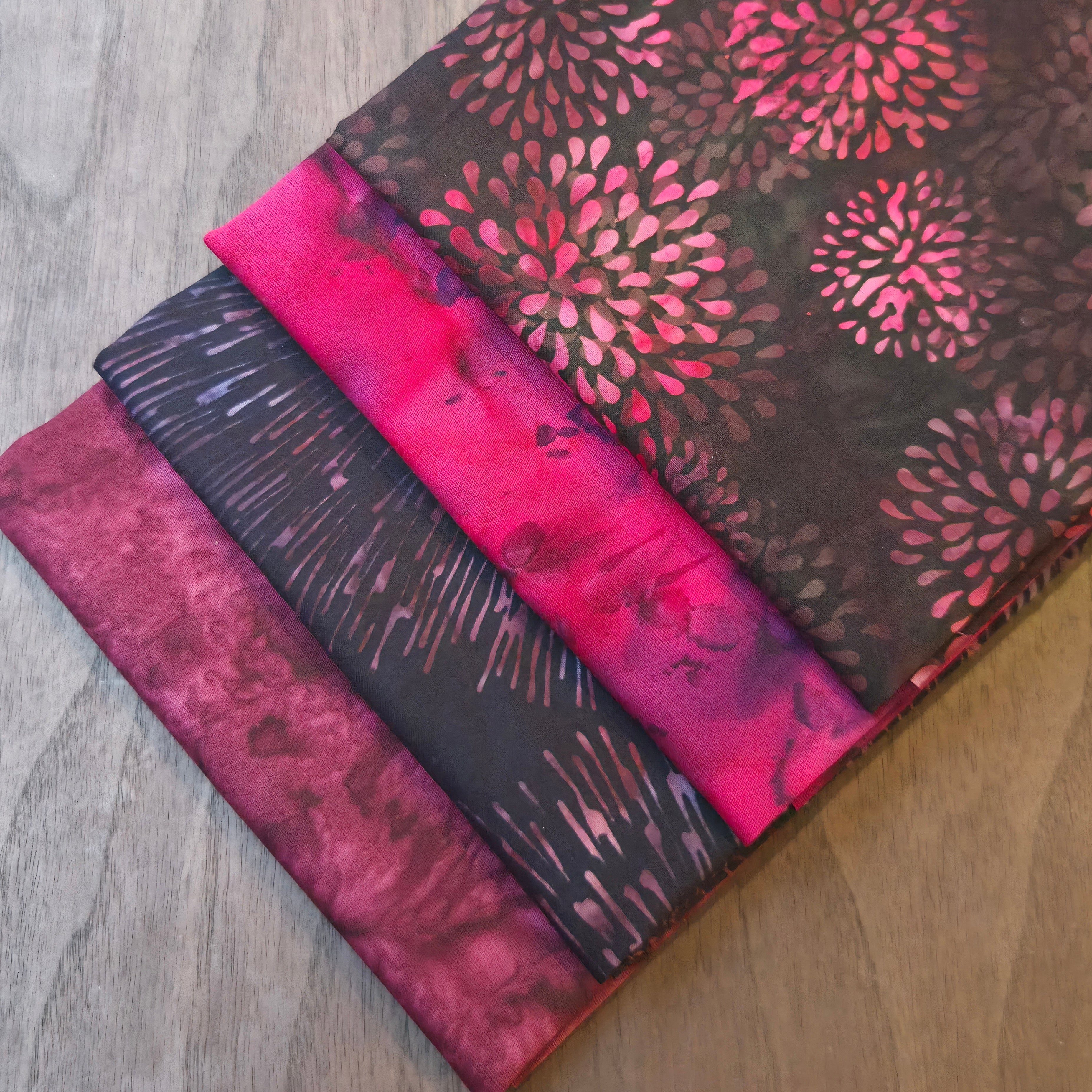 Fat quarter pack includes one fat quarter (20" x 22") each of 4 fabrics in the collection.