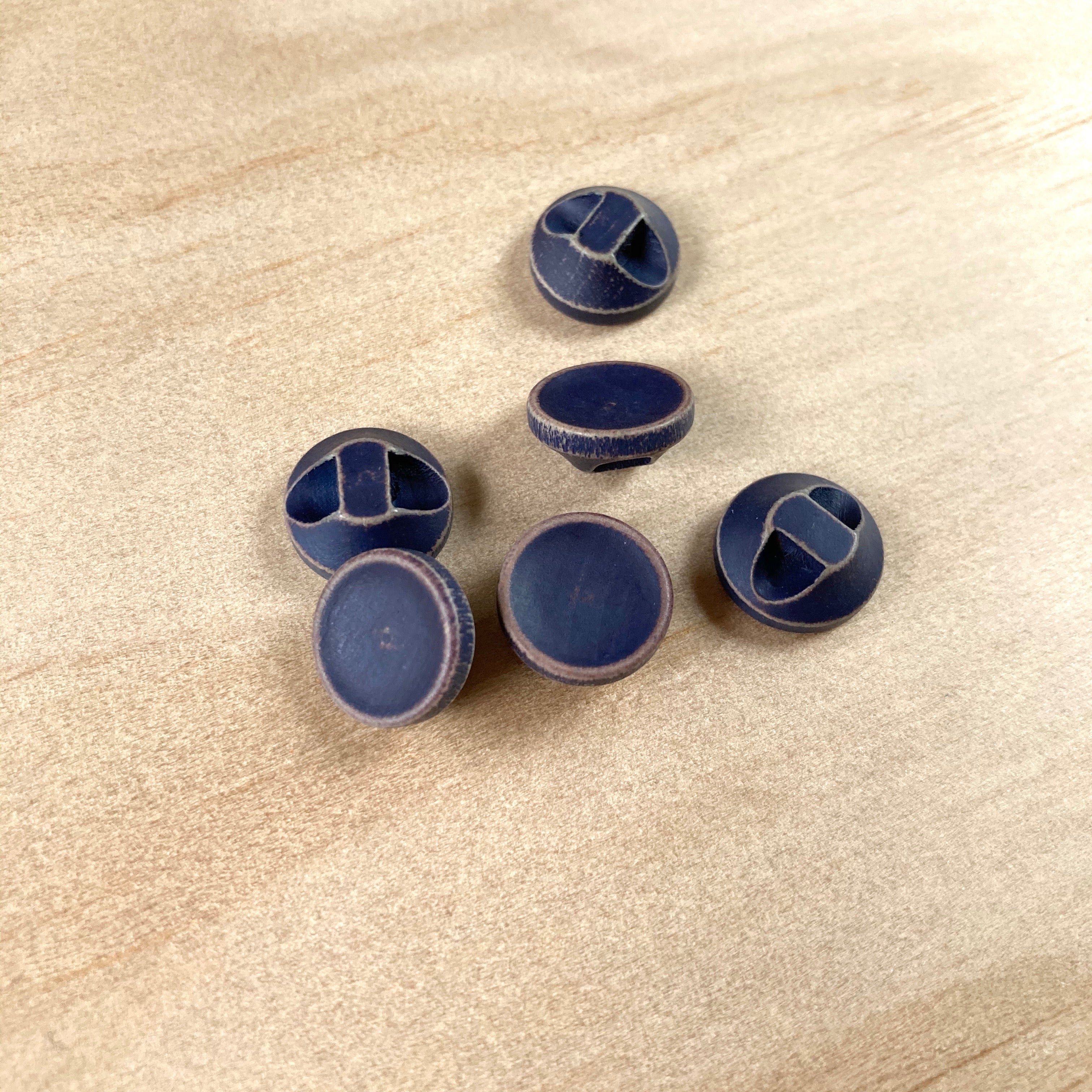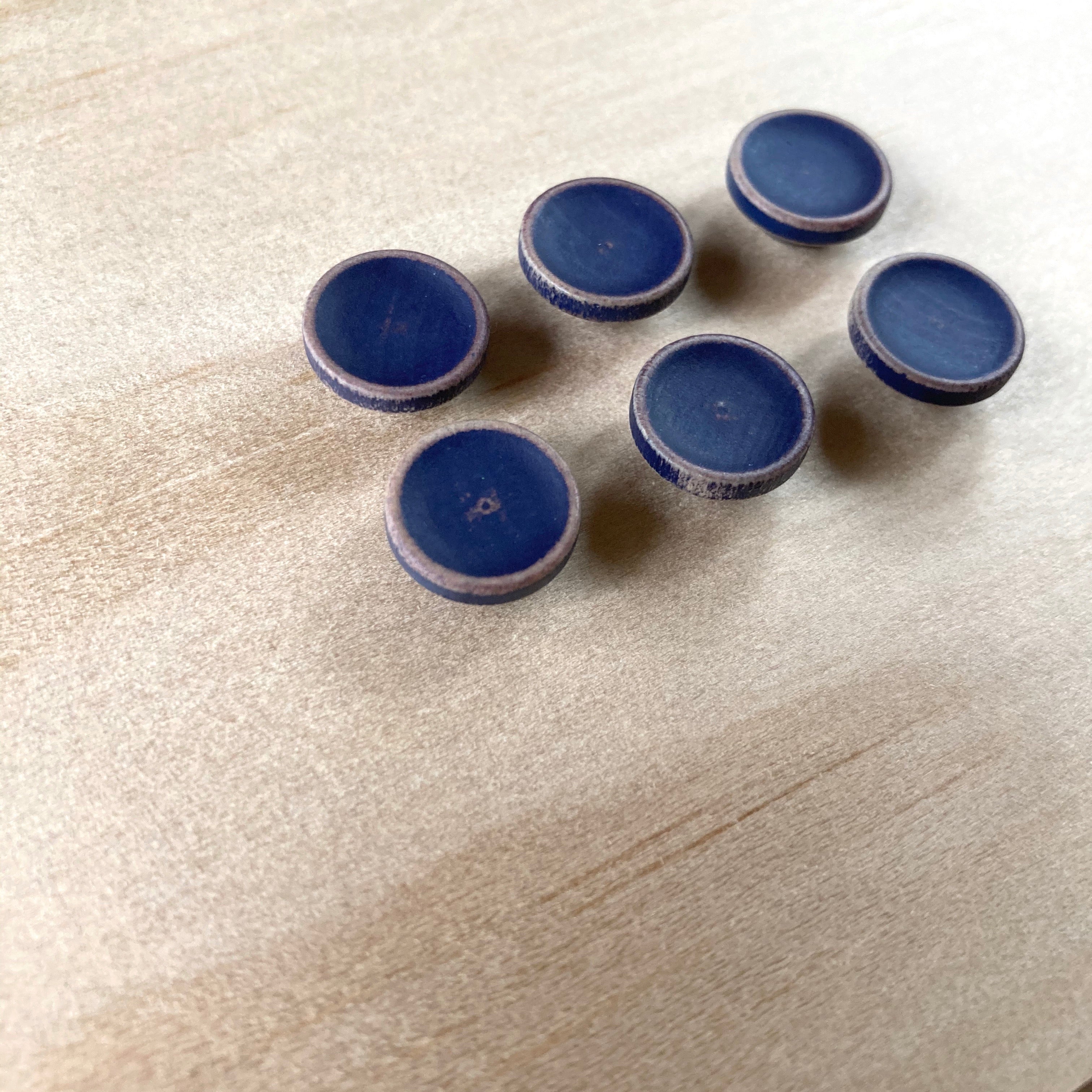Navy blue coloured wooden buttons, with distressed edges