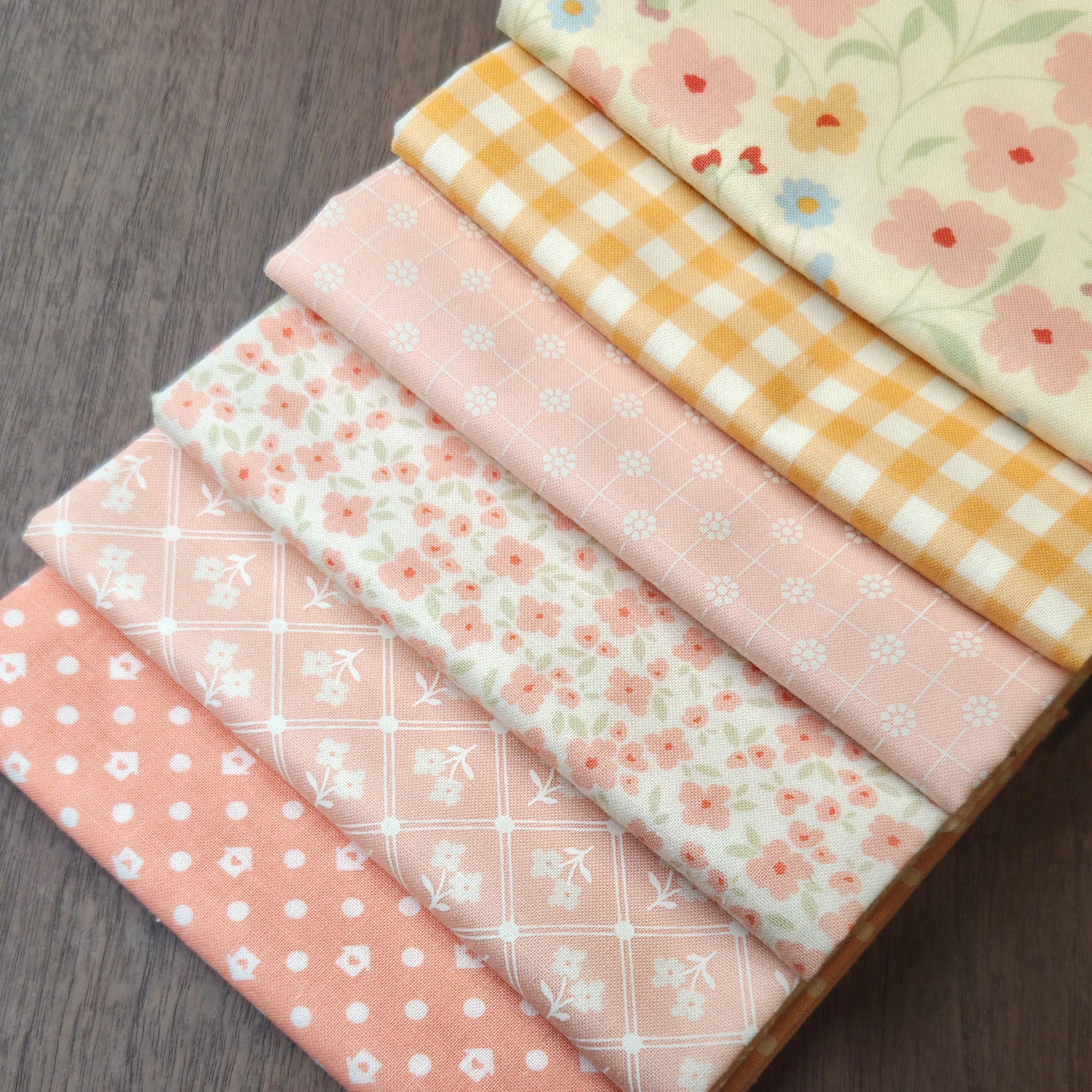 Fat quarter pack includes one fat quarter (20" x 22") each of 6 fabrics in the collection.