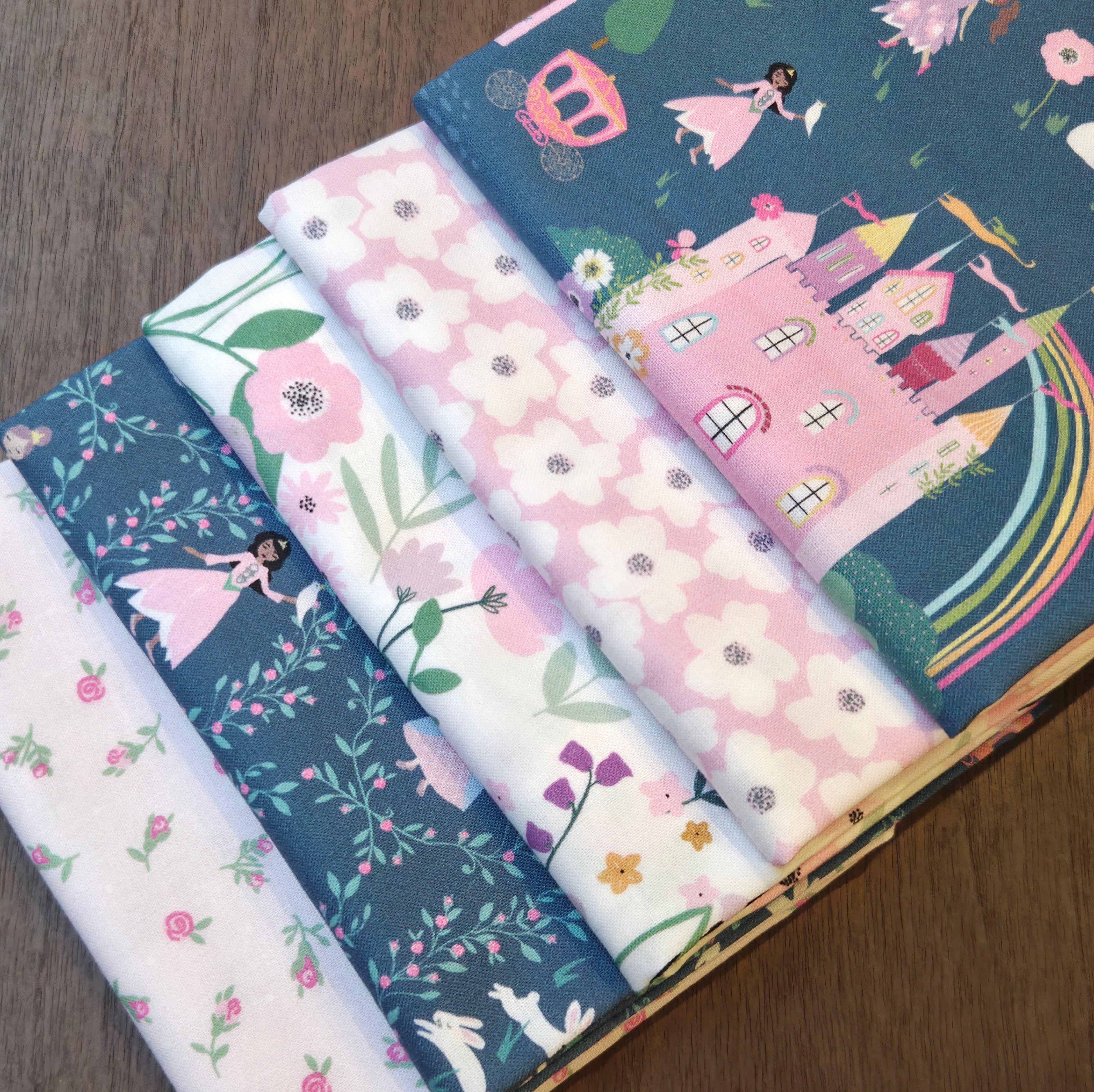 Fat quarter pack includes one fat quarter (20" x 22") each of 5 fabrics in the collection.