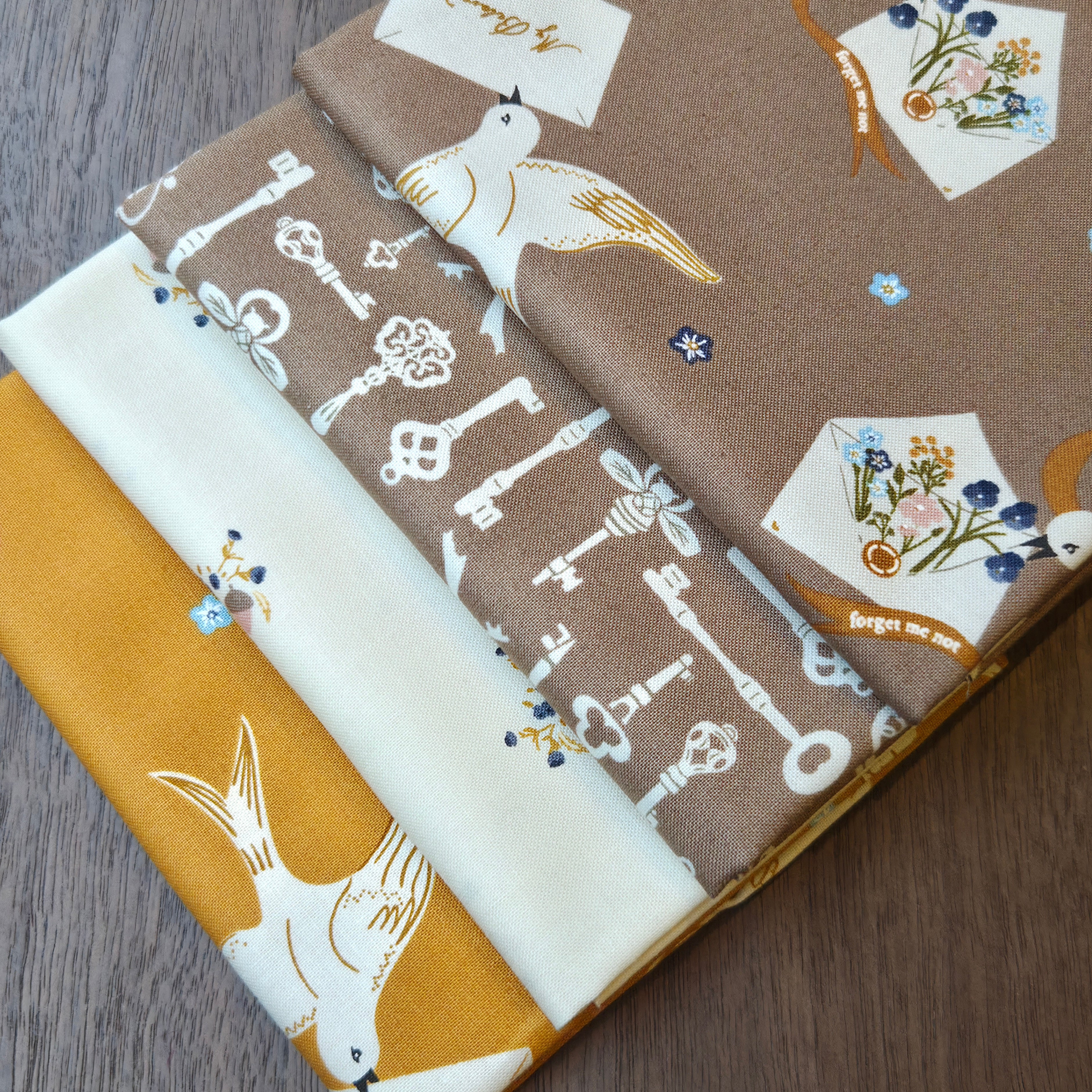 Fat quarter pack includes one fat quarter (20" x 22") each of 4 fabrics in the collection.