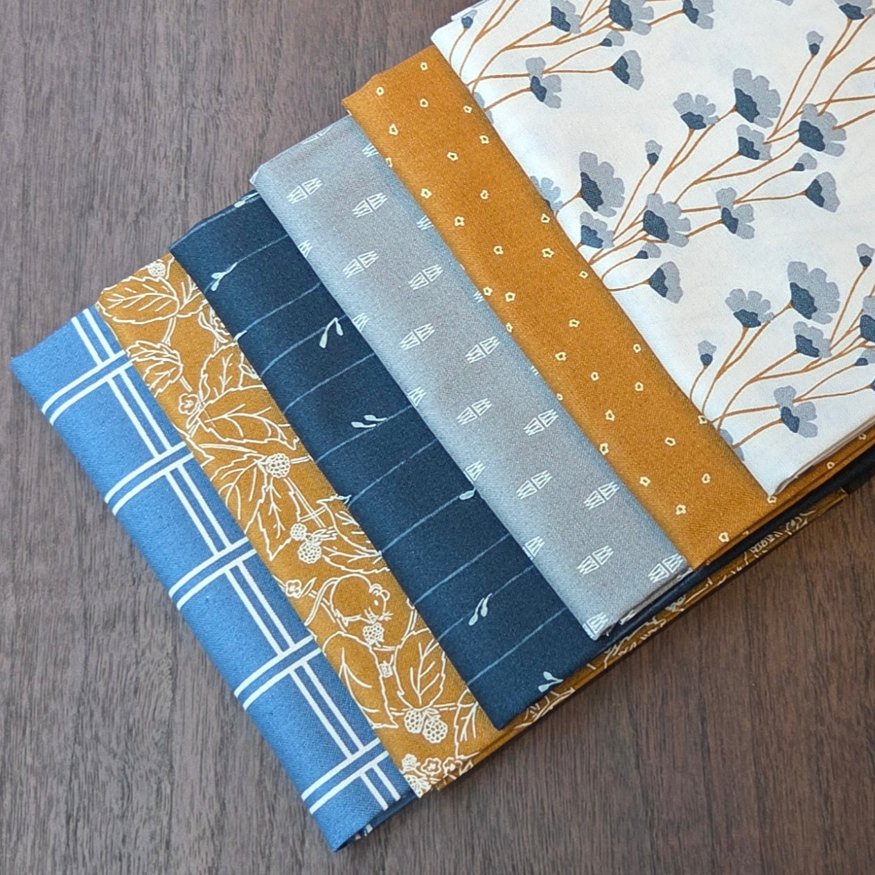 Fat quarter pack includes one fat quarter (20" x 22") each of 6 fabrics in the collection.