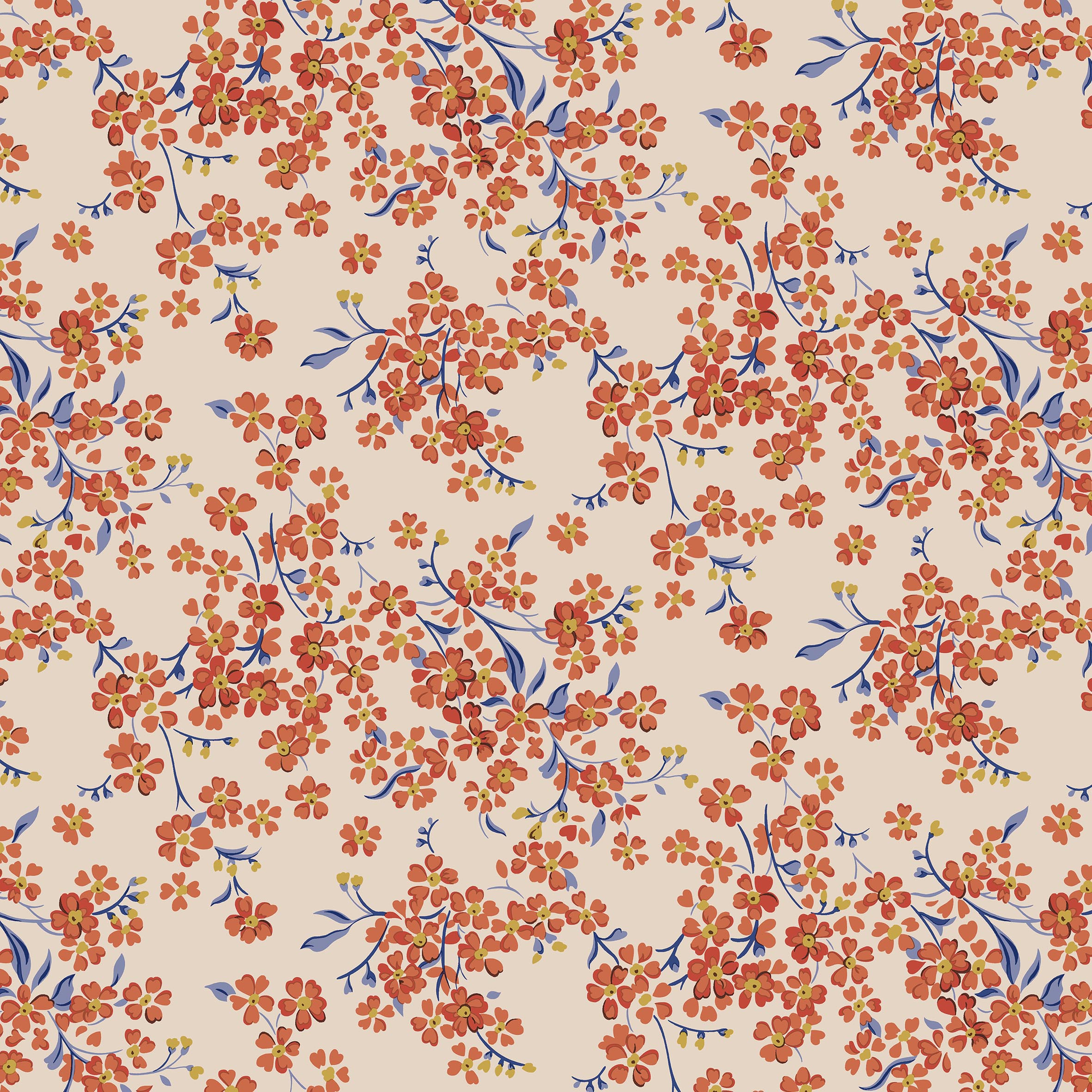 Inspired by a 1970s Liberty furnishing fabric, this joyful botanical has been meticulously reimagined using delicate brushstrokes. With its trails of tiny bud and forget-me-nots seemingly drifting in a gentle breeze, the pattern creates an ethereal, airy effect.