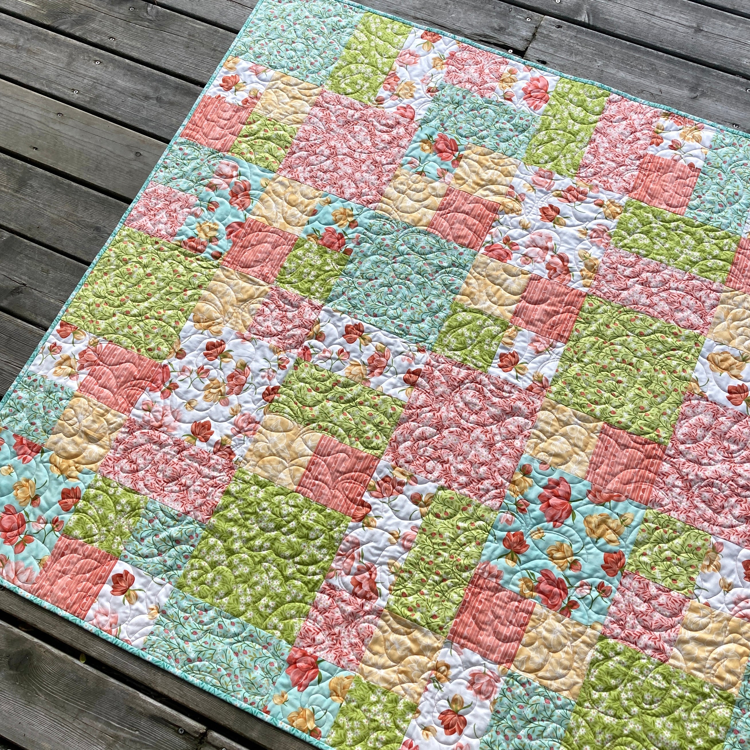 A bright and cheerful quilt kit with beautiful spring florals that will bloom all year long!