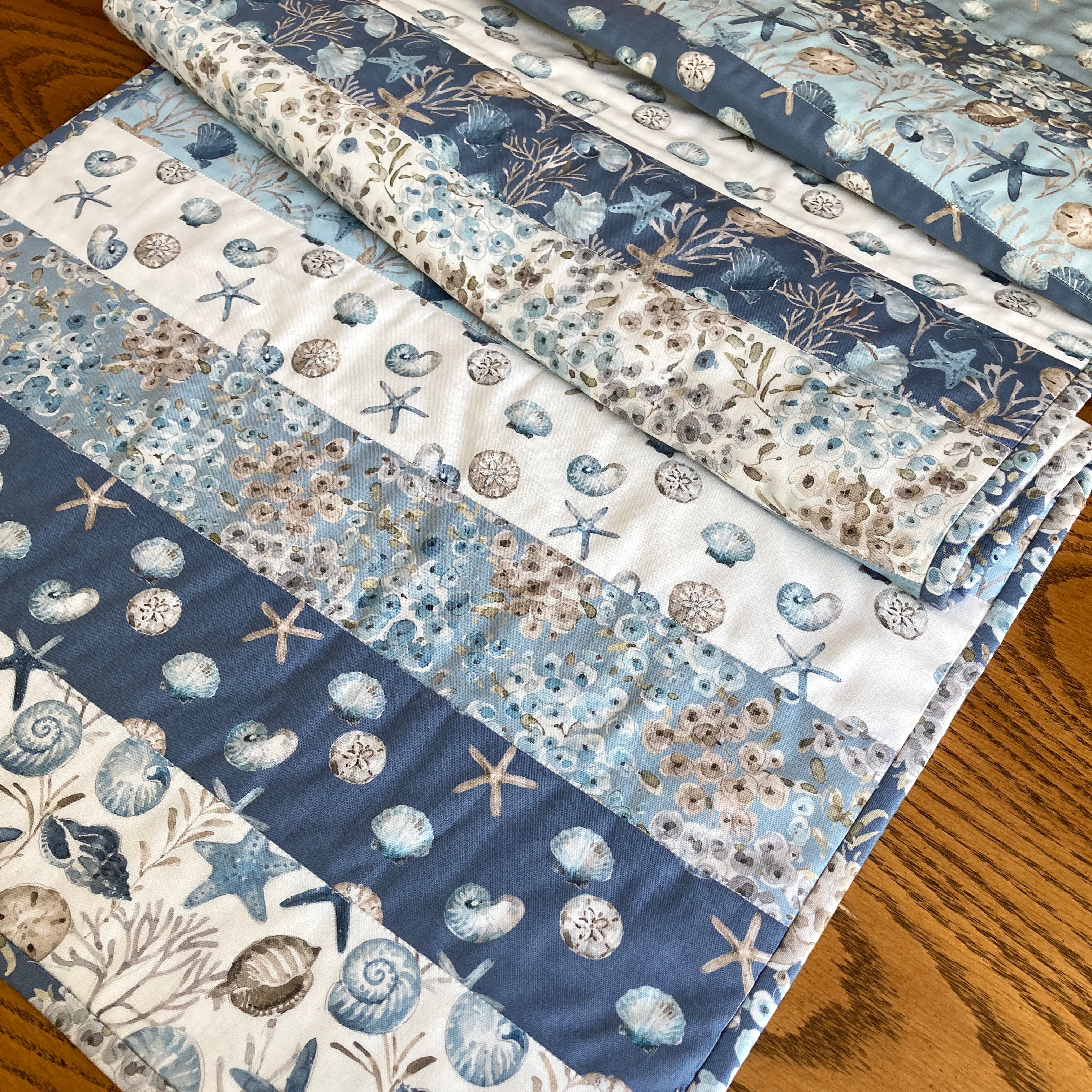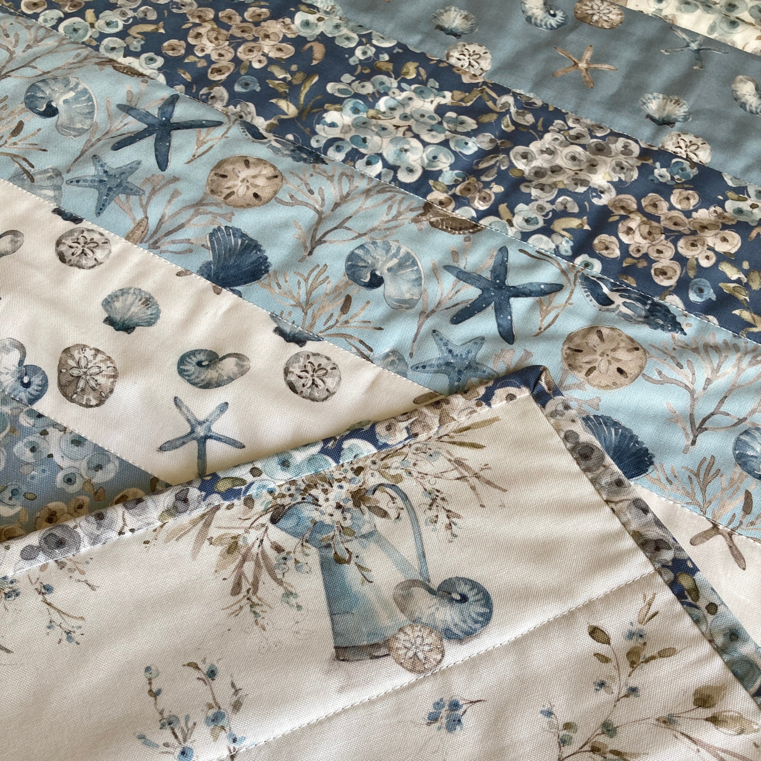 This lovely 'Coastal' table runner was created with fabrics from the Blue Escape Coastal collection by Lisa Audit for Riley Blake Designs.