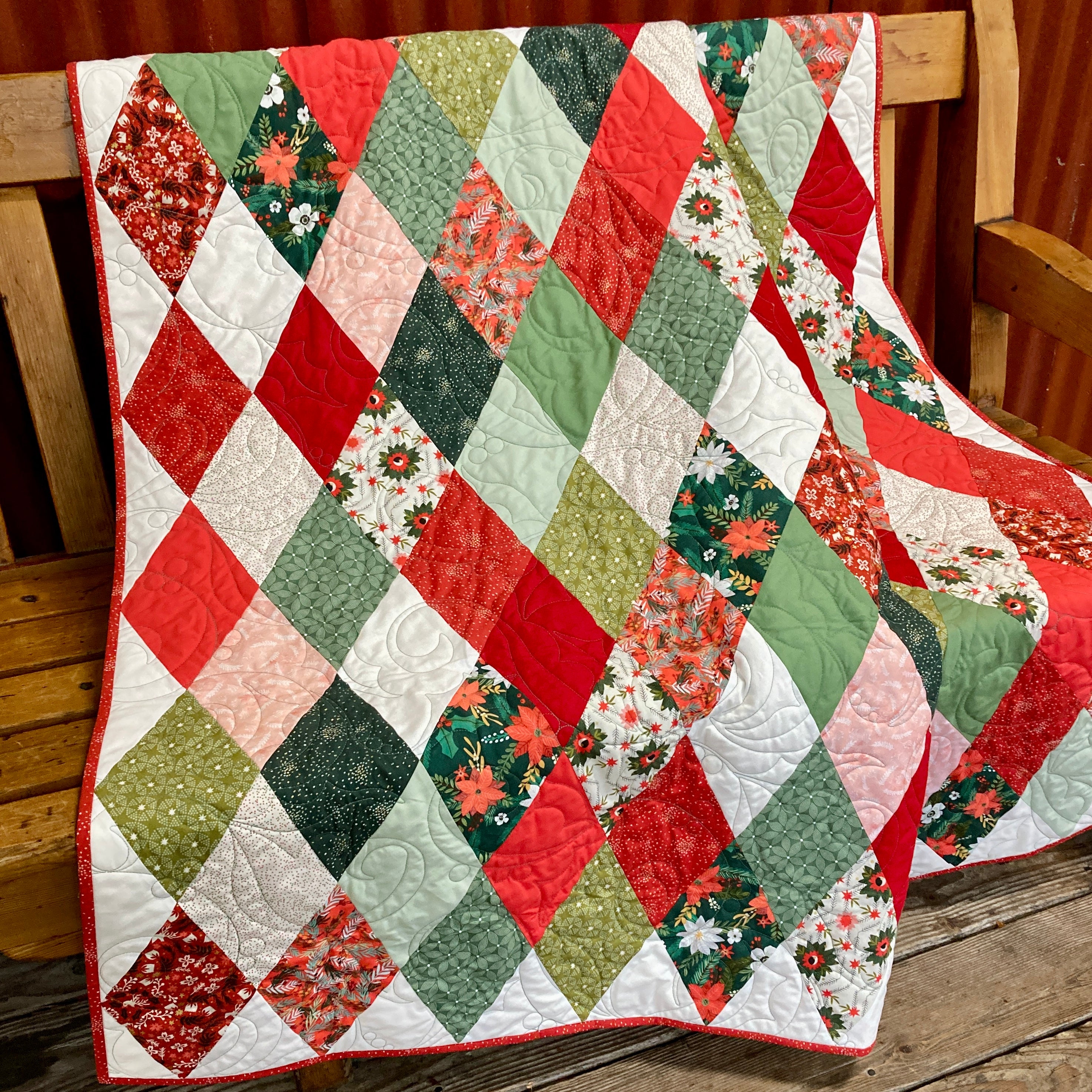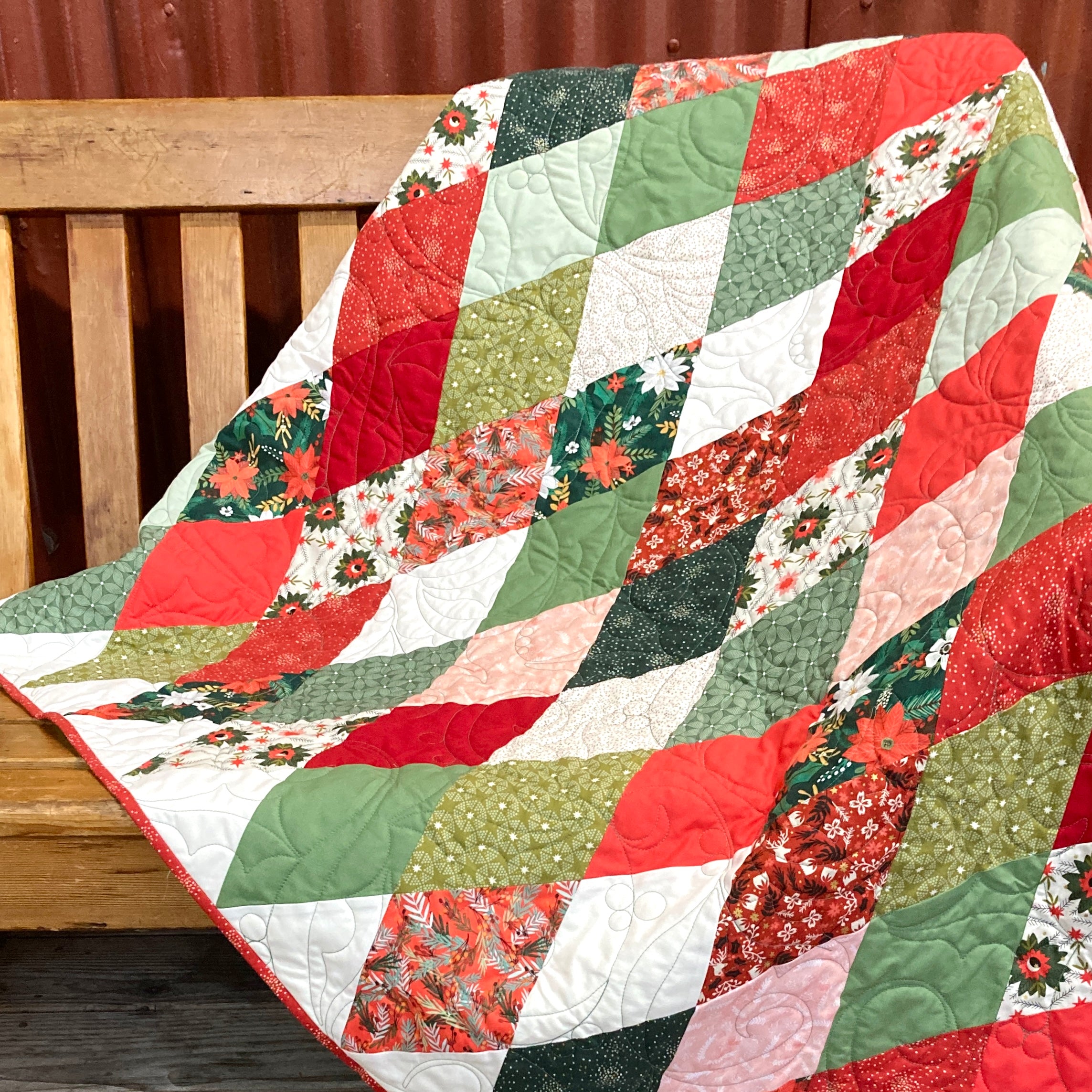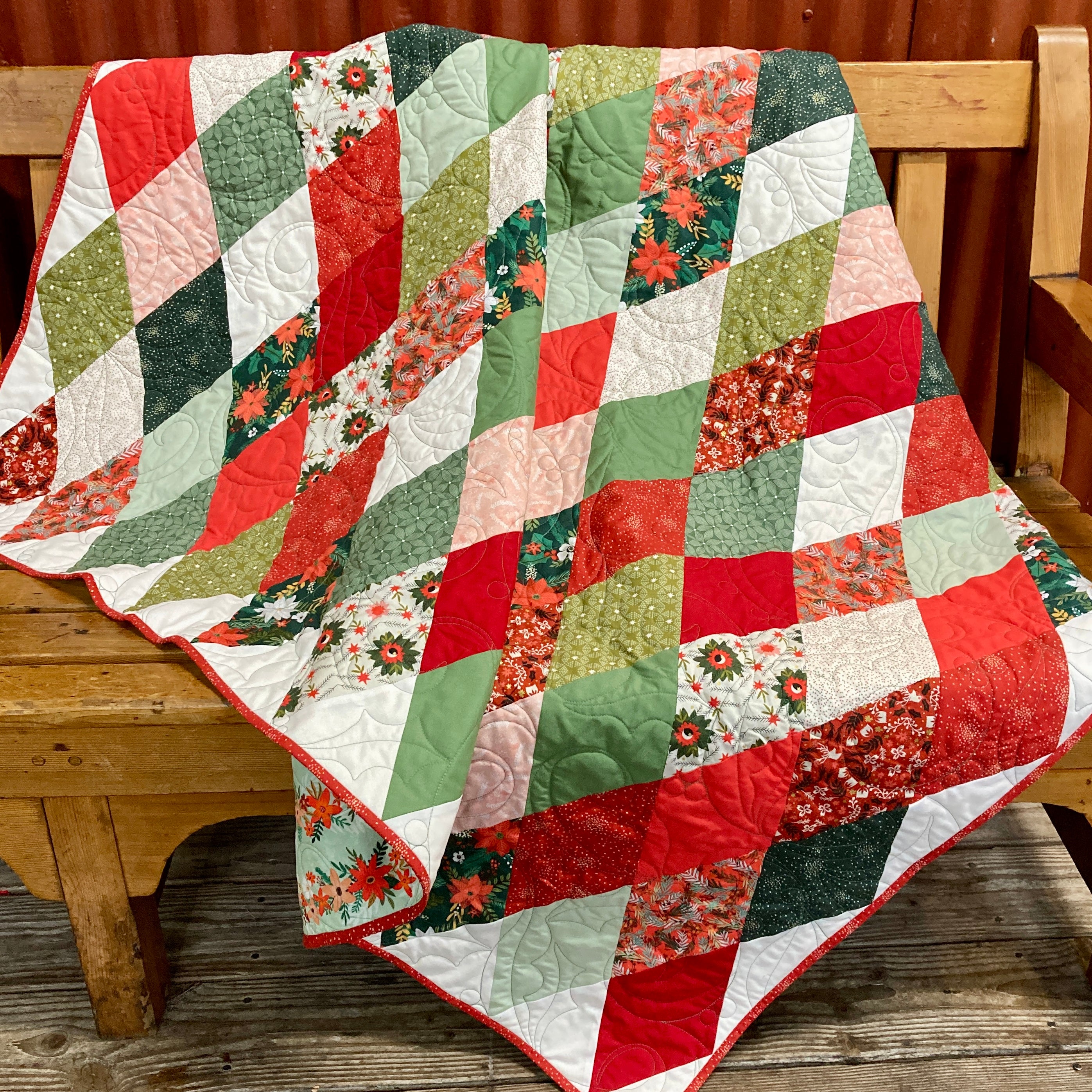 This quilt kit was made with fabric hand-selected from our Christmas fabric collections, and a few Kona Cotton Solids. We paired it with our Bella Moon Scarlet Quilt Pattern.