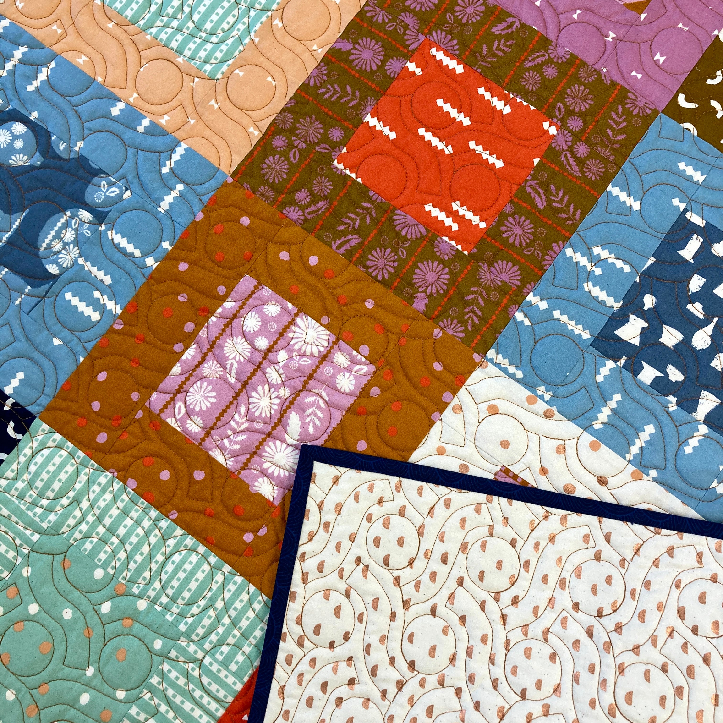 This quilt kit was created with the Vessel fabric collection by Alexia Abegg for Ruby Star Society. These gorgeous prints were brought to life with the Bella Moon quilt pattern: Wrapped.