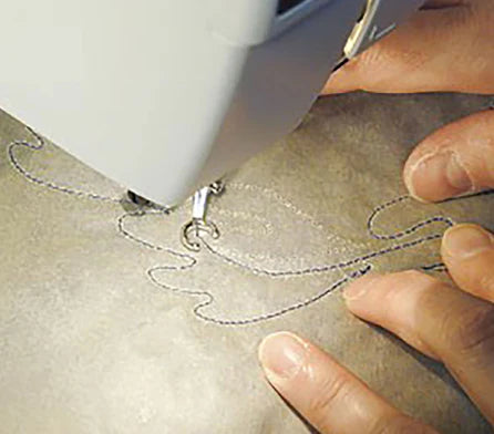 Stitch with large unthreaded needle following the design to needle punch through all layers.