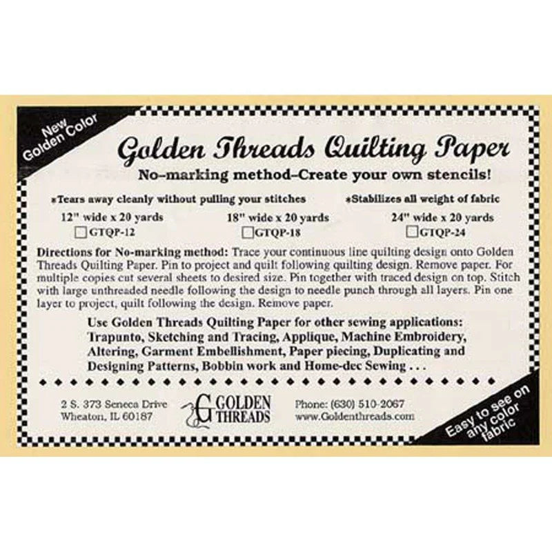 Golden Threads Quilting Paper - 12" Wide x 20 Yard Long Roll