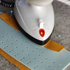 Firm enough to work with even bouncy wool and it's heat resistant to 230°C/445°F. Plus it doesn't distort with steam. You can even use it under the edge of fabric when ironing on fusible interfacing; the glue won't stick to the silicone. And if you're using a sleeve ham, it will hug the curve on that too.