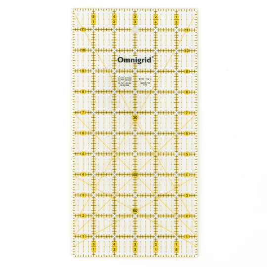 • The Omnigrid rectangular ruler set includes one each of three rectangular quilting rulers: 1" x 6", 4" x 8" and 6" x 12" rulers. Use the Omnigrid 1" x 6" to check seam allowances, trim foundation piecing, and mark hems and seam allowances. The Omnigrid 4" x 8" rectangle also has a 1/8" grid; making it excellent for miniature quilts and for scrapbooking. The Omnigrid 6" x 12" rectangle is used to cut strips, shapes and bias pieces when quilting; it is particularly handy for secondary cutting after cutting strips, and it can also be used to cut fat quarters into strips and shapes.