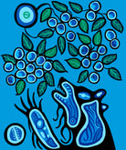 Blueberry Bear features a beautiful bear and intricate blueberry patterns, blending cultural artistry design. Perfect for adding a touch of uniqueness to any project, this fabric celebrates heritage and creativity in every detail.