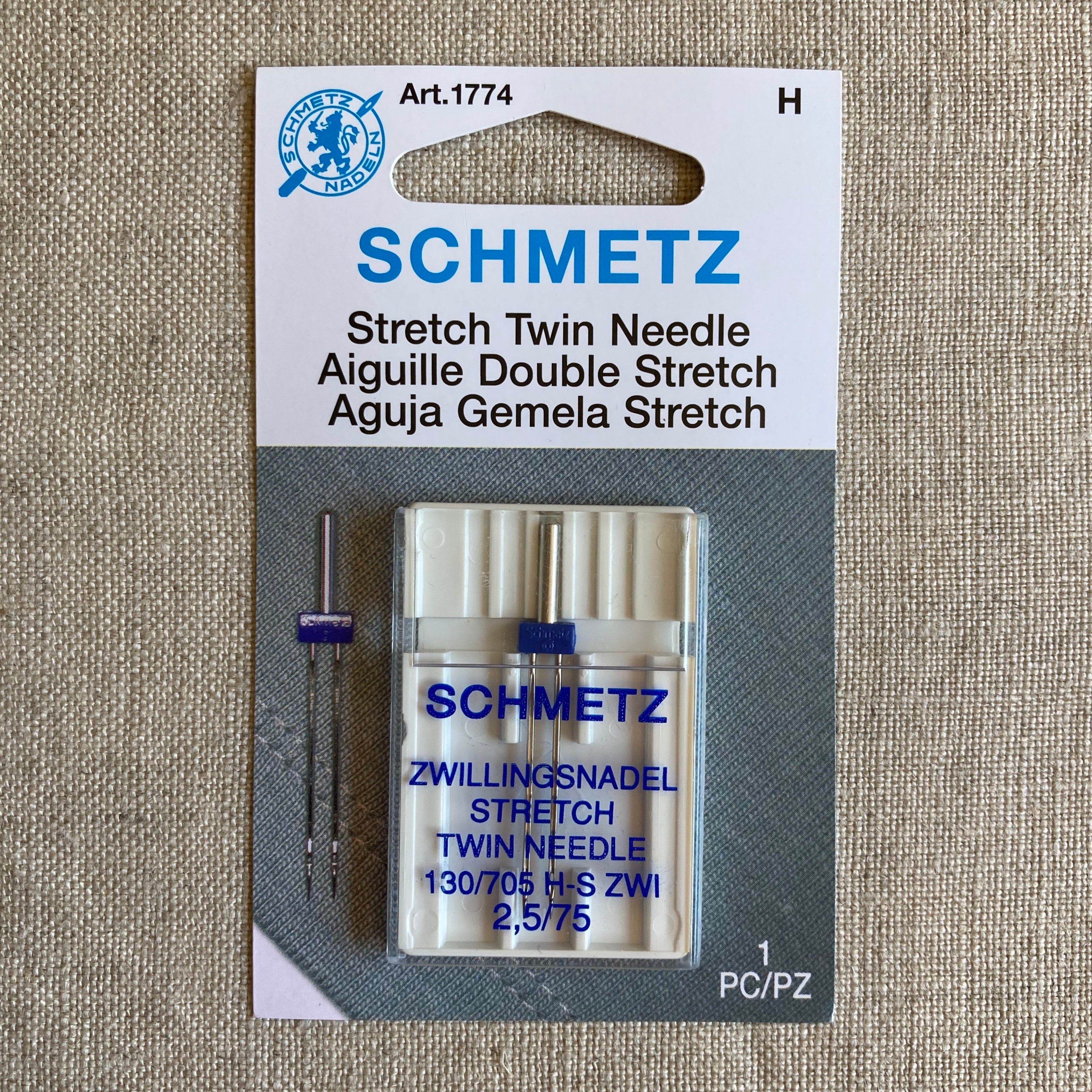 Two Stretch needles mounted on one shank to create two rows of stitches simultaneously.