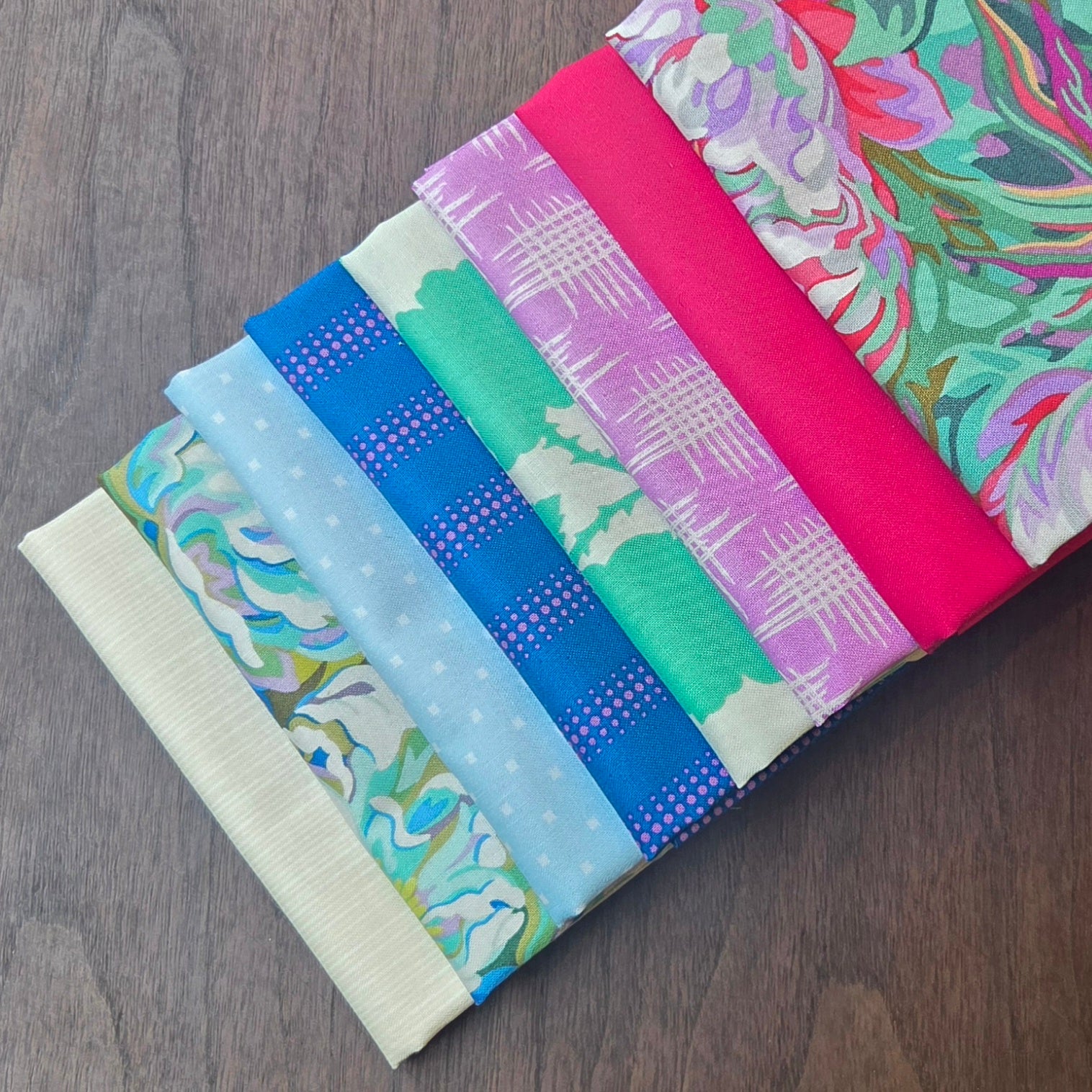 Fat quarter pack includes one fat quarter (20" x 22") each of 8 fabrics in the collection.