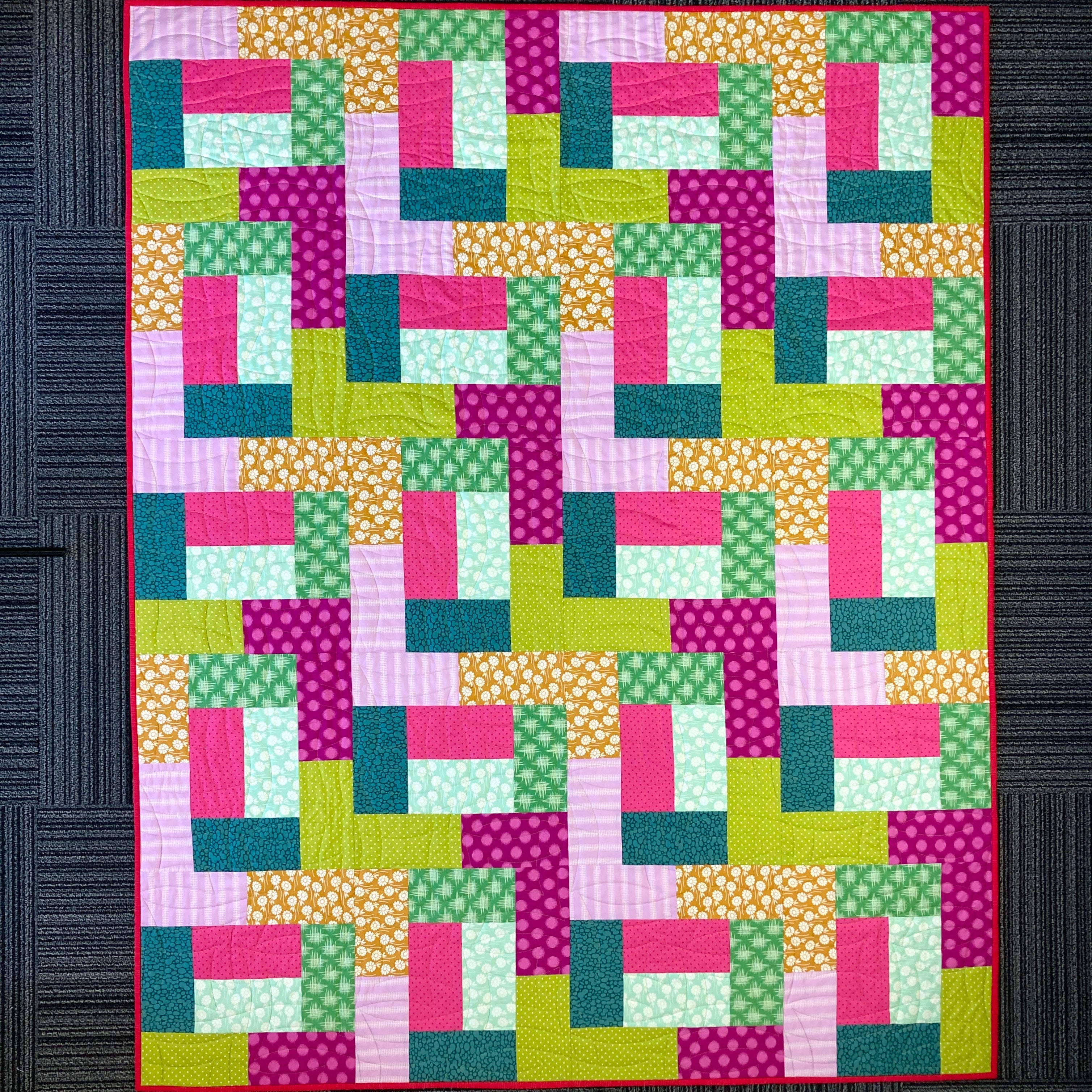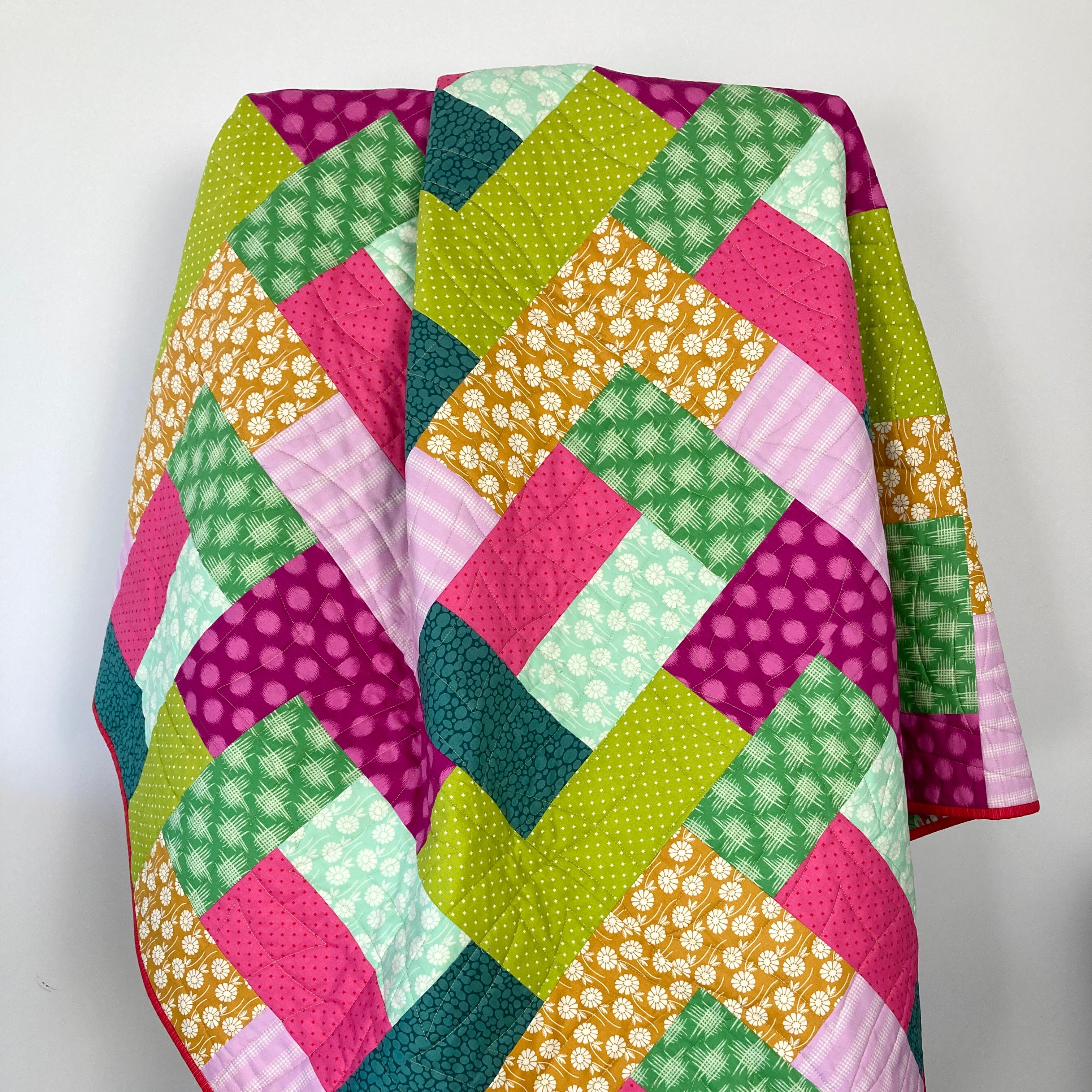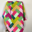 This quilt kit was created with the Pop Sugar fabric collection by by Heather Bailey for FIGO Fabrics and paired with our Bella Moon pattern: Sidewalk (formerly Belle).