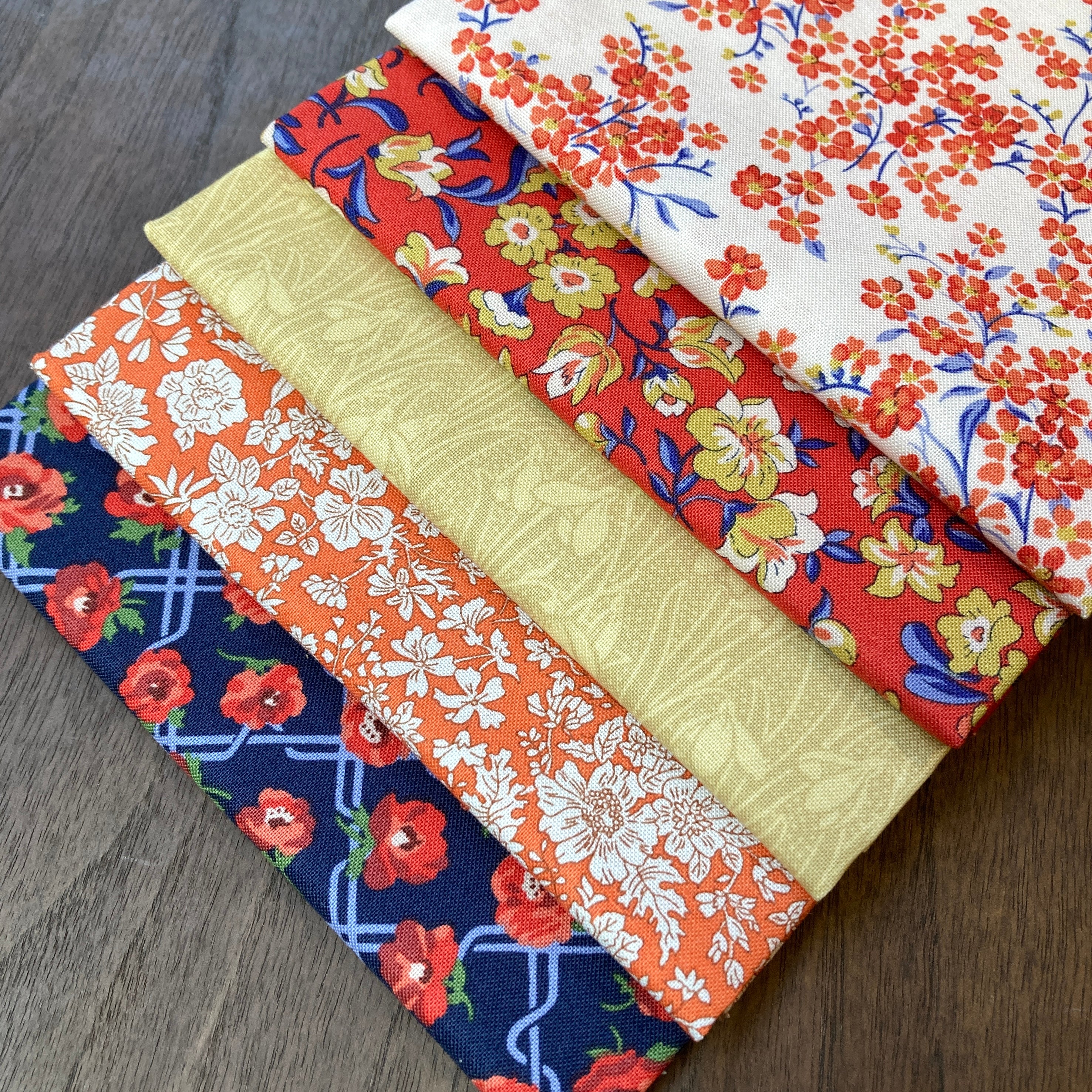 Floral Nostalgia Fat Quarter Pack - 5pcs: Tangerine