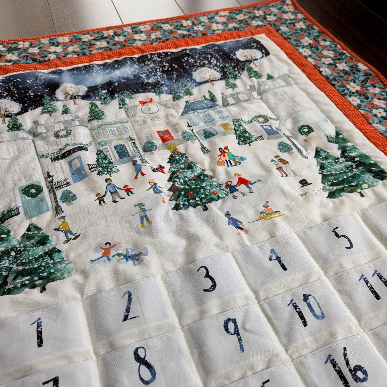 Project requires batting, 0.9m meters of backing fabric, thread, and a wooden dowel for hanging. We backed our advent calendar with Baby, It's Cold Outside - Tartan: Spruce. We have pre-cut backing pieces available.