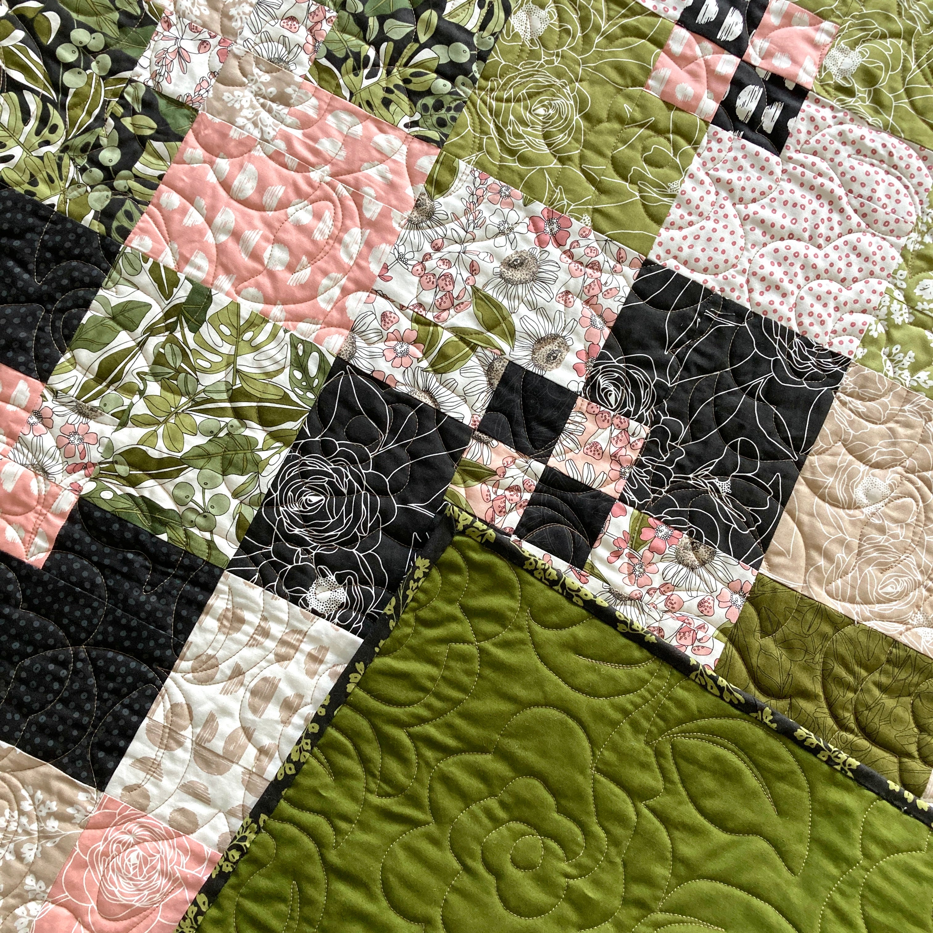 Our sample was long-arm quilted by Nick at Mystery Stitch Designs.