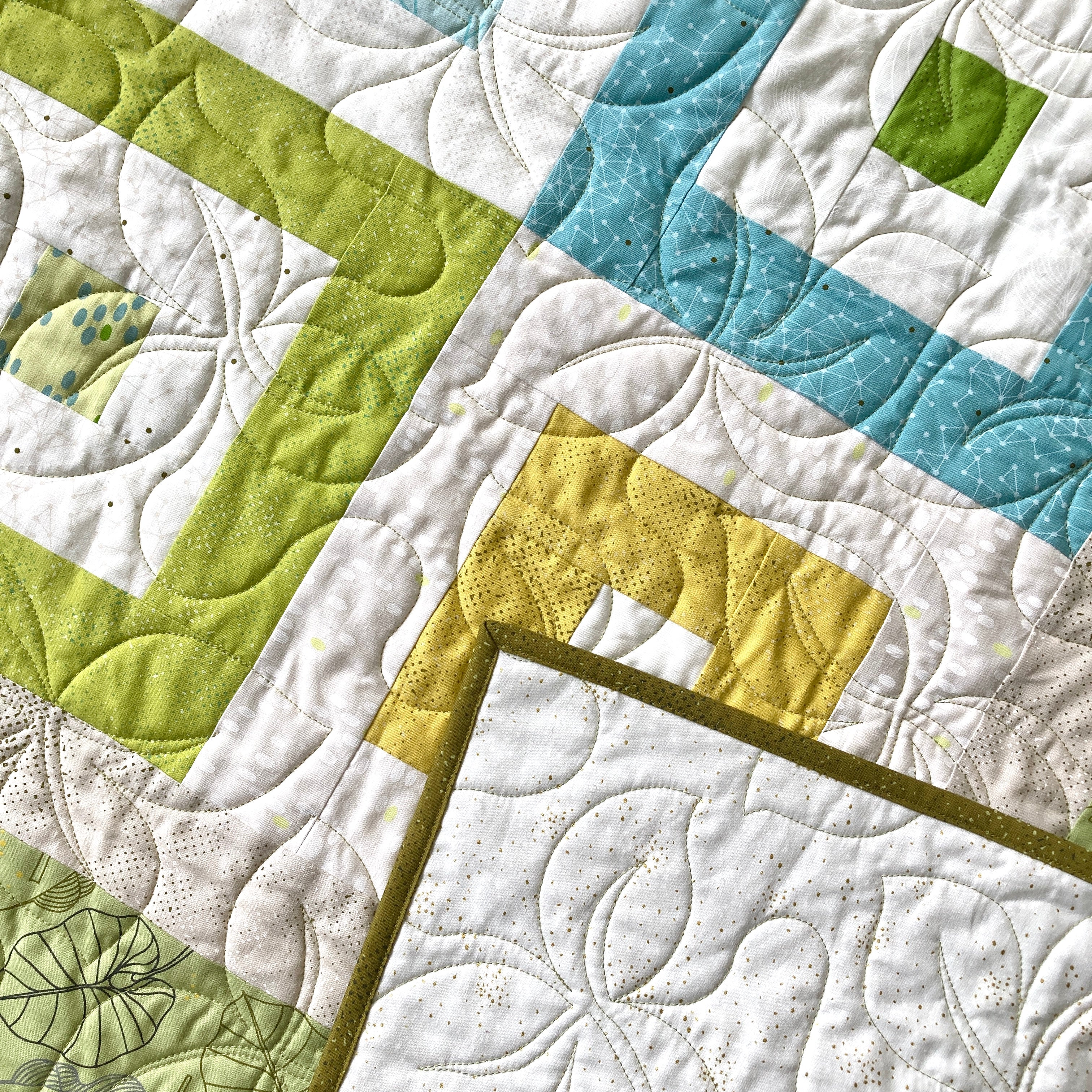 Our sample was long-arm quilted by Nick at Mystery Stitch Designs.