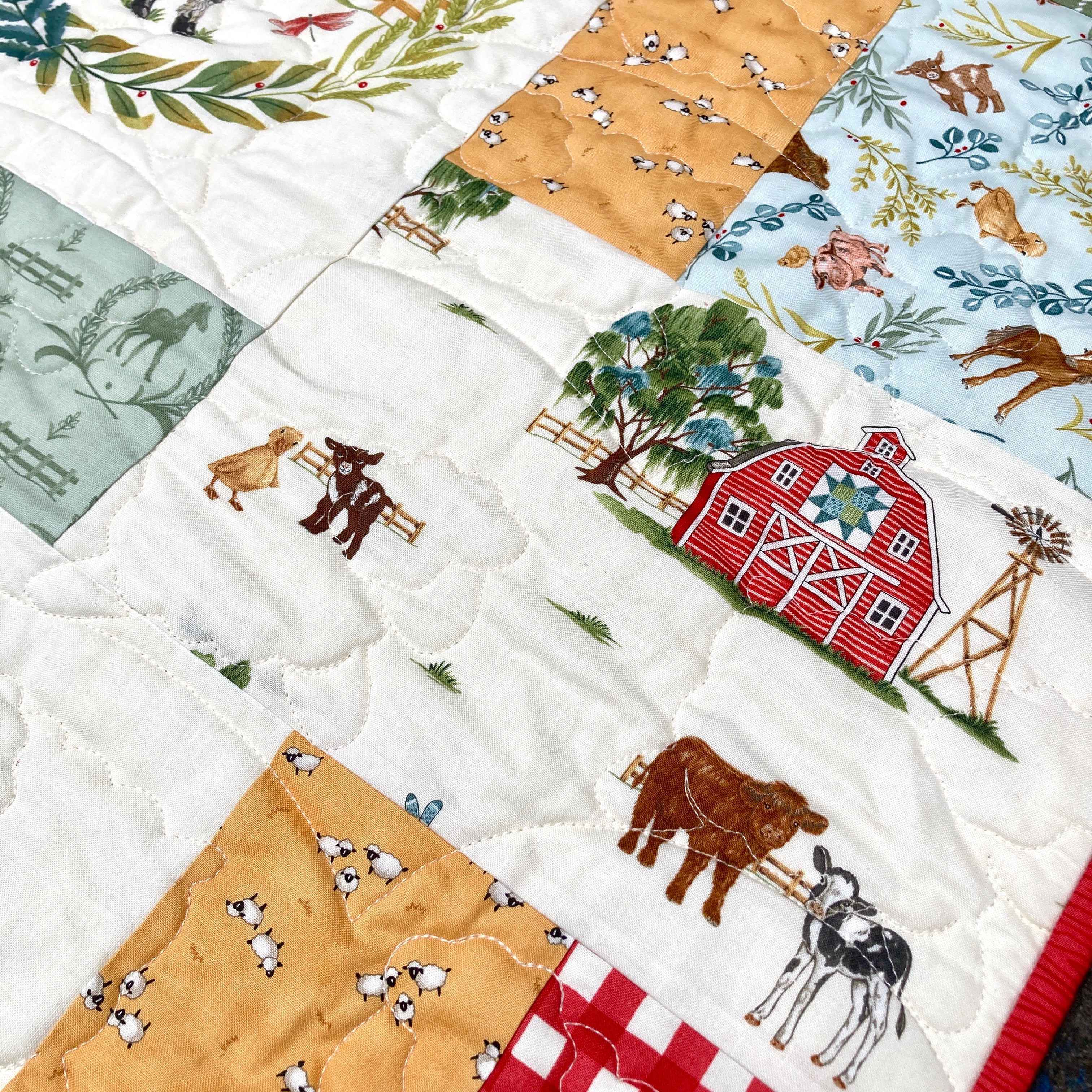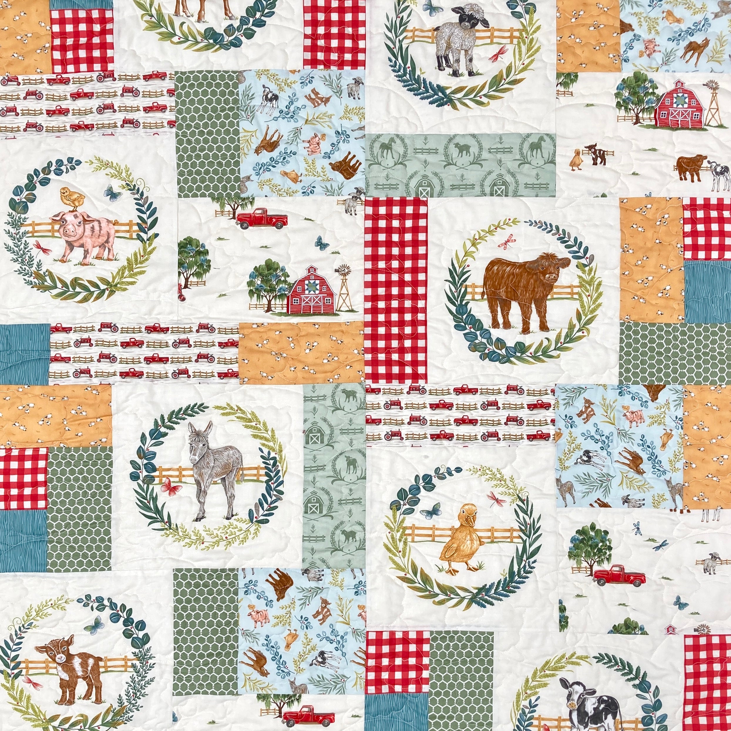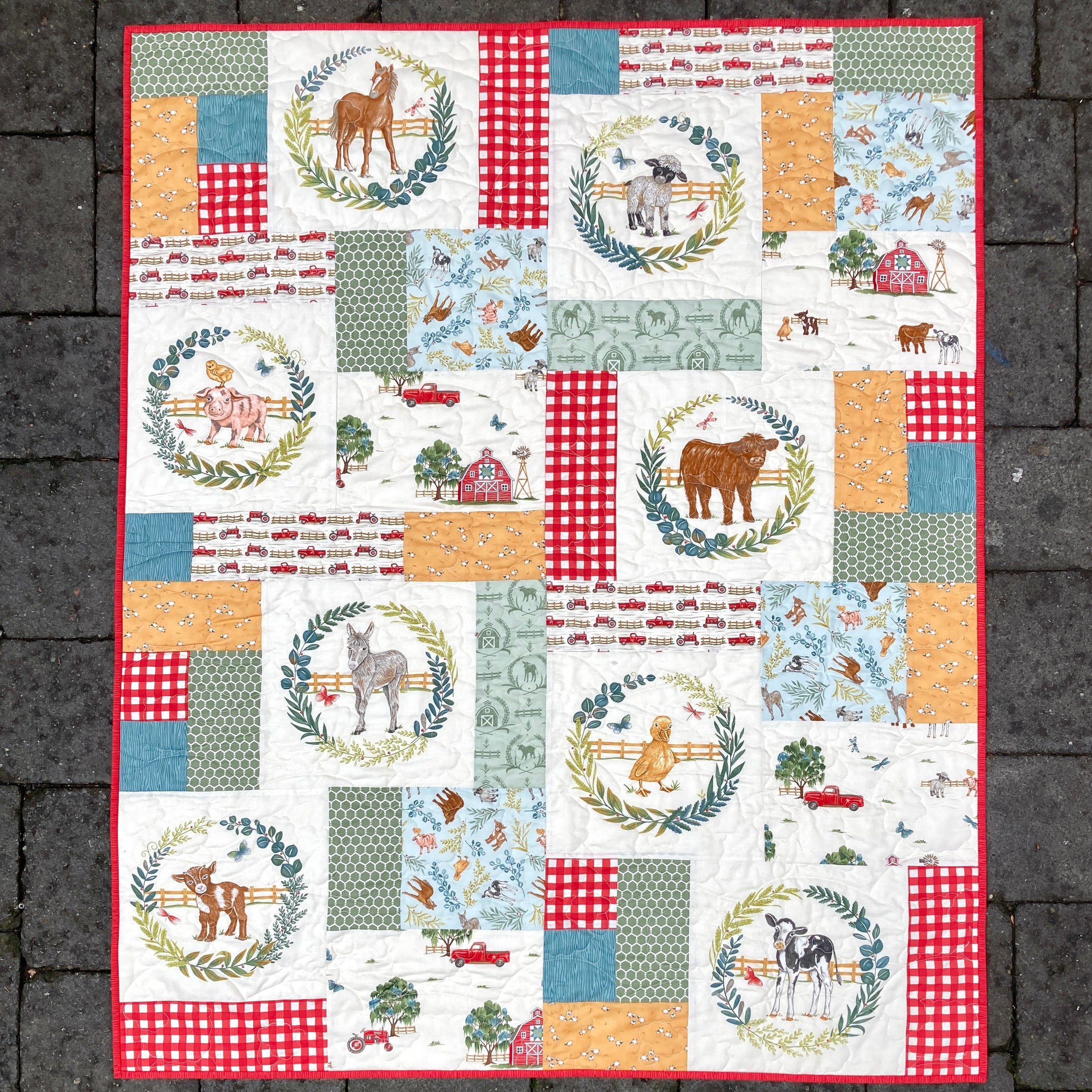 This quilt kit makes a perfect and adorable baby quilt. It was created using the Willow's Farm collection by Deb Strain for Moda Fabrics. We created a unique pattern to highlight the baby animal panel.
