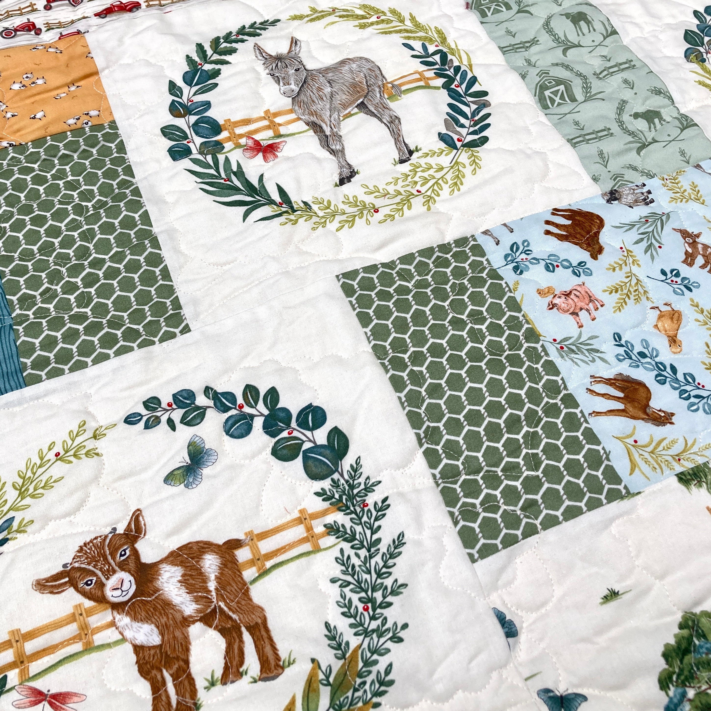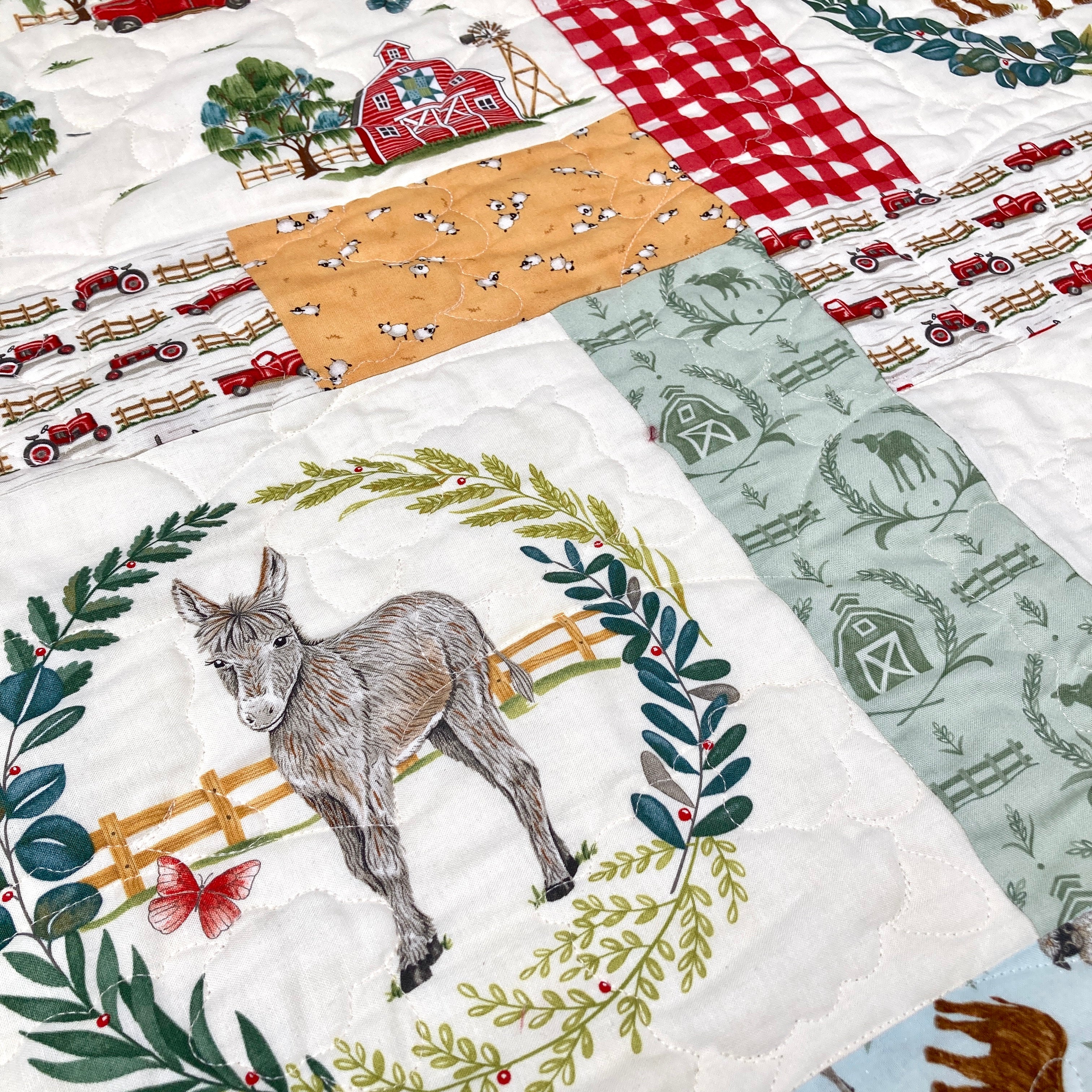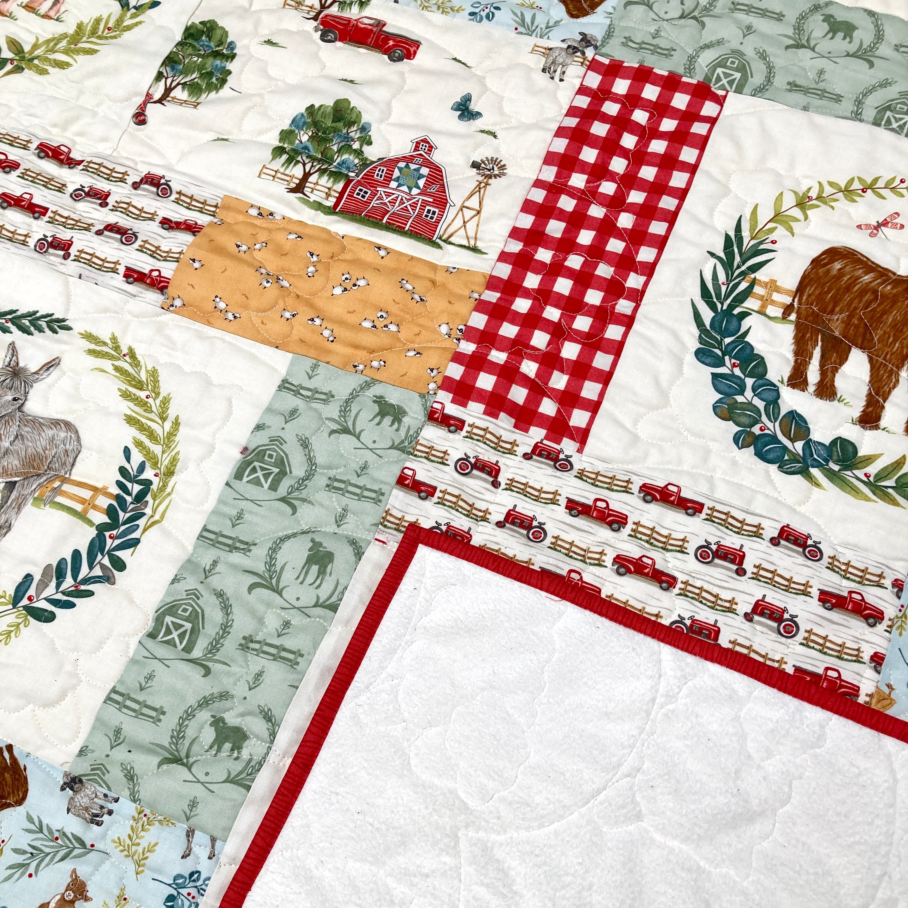 This quilt kit makes a perfect and adorable baby quilt. It was created using the Willow's Farm collection by Deb Strain for Moda Fabrics. We created a unique pattern to highlight the baby animal panel.