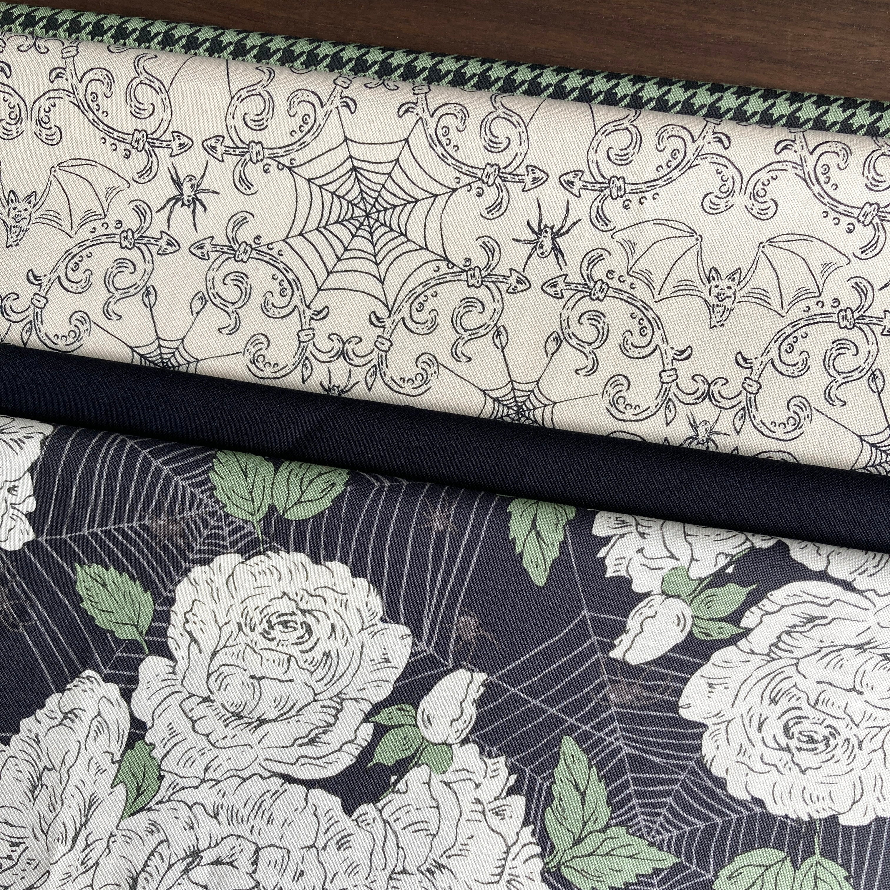 This kit was created with the Home Sweet Haunt by Stacy Iest Hsu for Moda Fabrics. Home Sweet Haunt is a pinch spooky, a pinch sweet and a whole lot of creepy fun. With vintage illustrations and color palette, Home Sweet Haunt creates a world of old time Halloween.