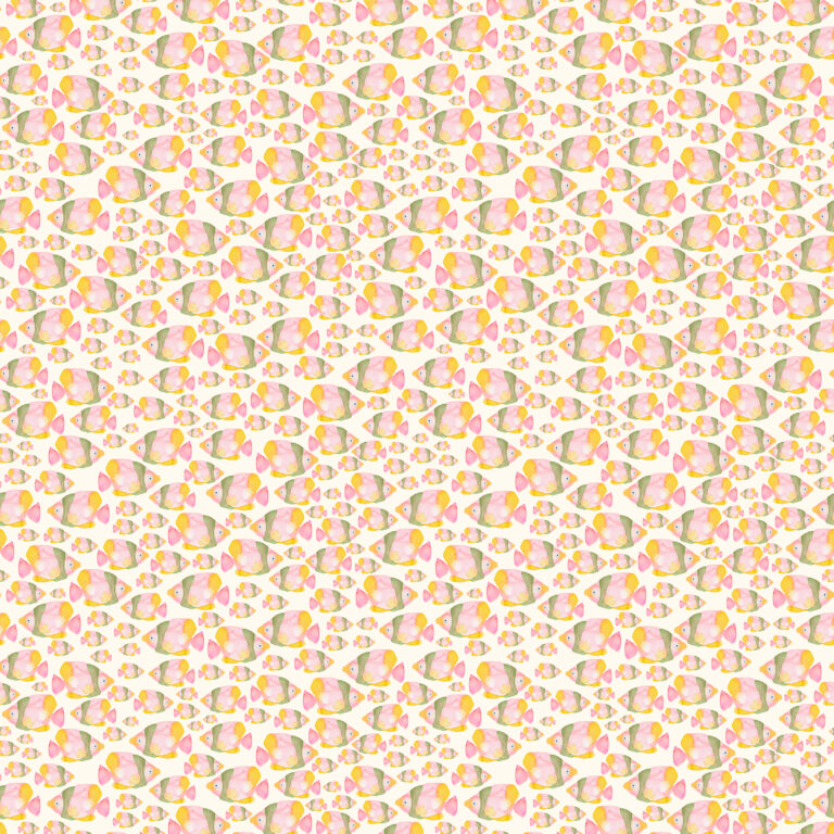 Painted in intricate watercolour detail, the designs are full of interesting aquatic creatures and treasures. Beautiful shoals of colourful fish, pretty seahorses and friendly sharks swim across the fabrics.