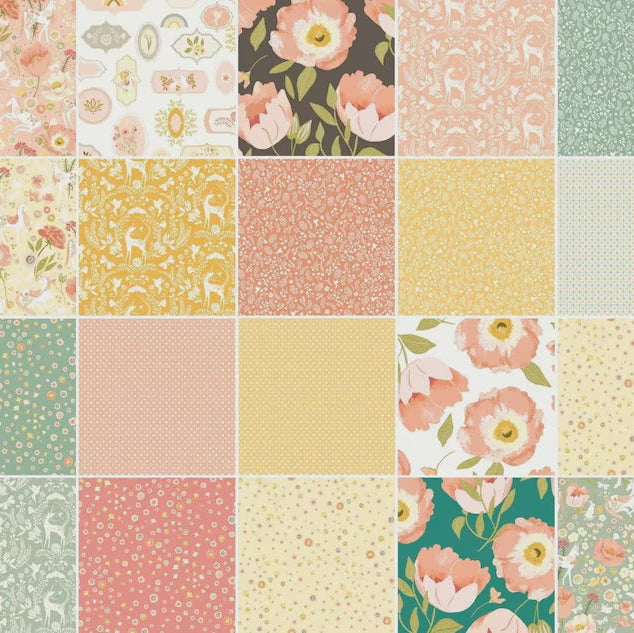 Complete collection of Unicorn Dreams by Ginger Deverell will have your head spinning with its whimsical beauty and artistry. There are unicorns, butterflies, bunnies, birds, bugs dancing among the gorgeous flowers. The large poppies are light and airy. All the patterns are dainty with beautiful soft greens, pale peaches and buttery yellows.