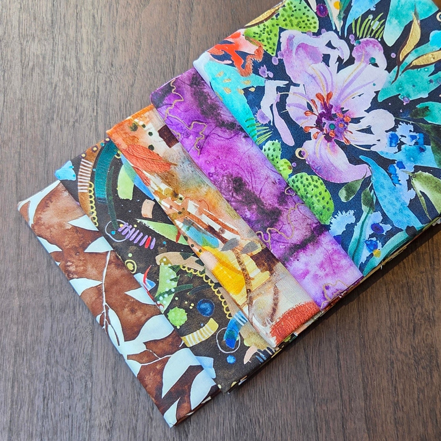 Fat quarter pack includes one fat quarter (20" x 22") each of 5 fabrics in the collection.