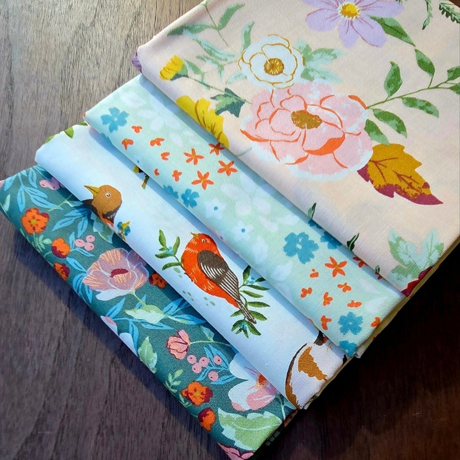 Fat quarter pack includes one fat quarter (20" x 22") each of 4 fabrics in the collection.
