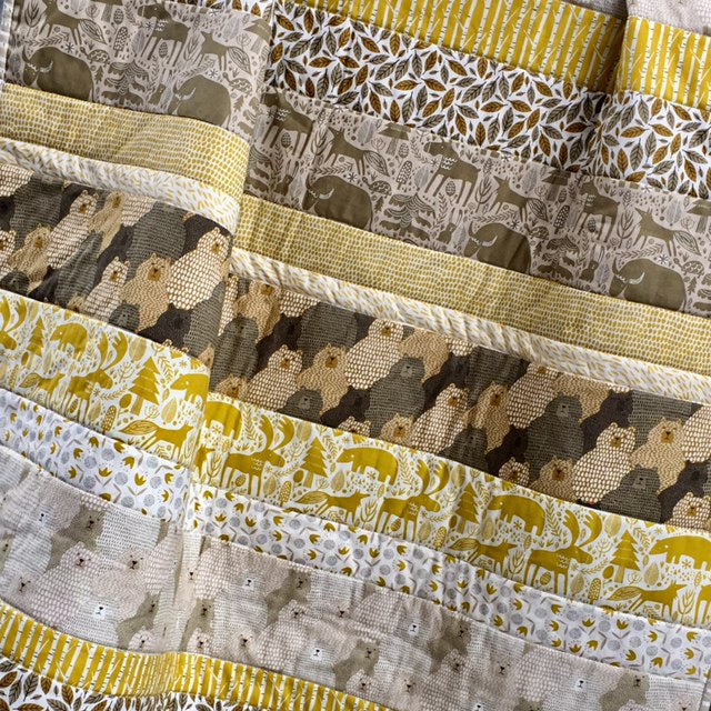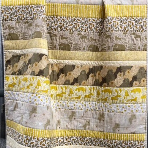 Our simple row quilt is a wonderful way to show case delightful collections of fabrics. We used the Big Sky collection by Annie Brady (for Moda Fabrics) to create our Bears in the Woods quilt. Kit includes instructions and all fabric for quilt front including binding.