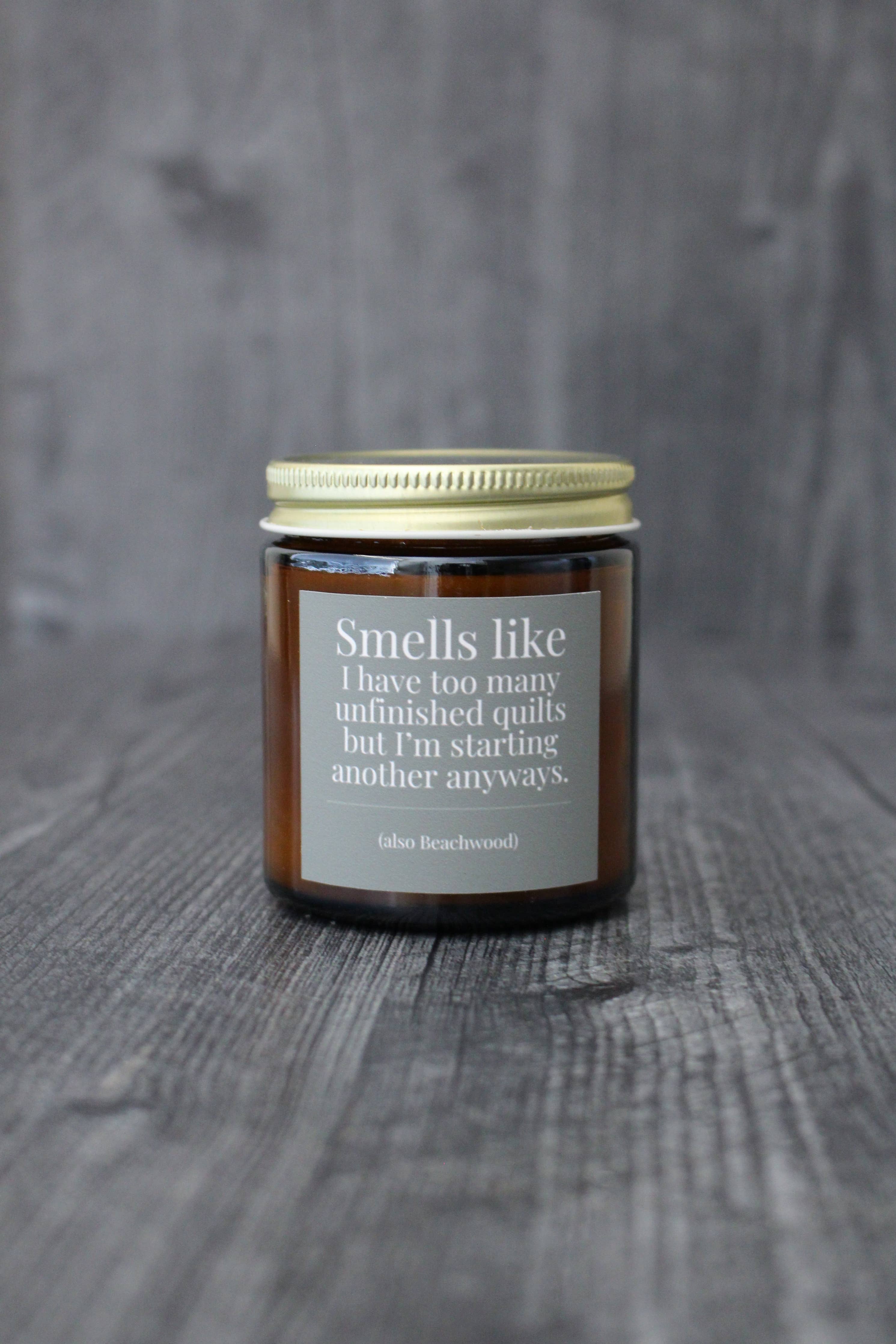 Now for seamstresses and quilters, these candles are hand-poured into amber jars which emit a cozy, warm tone when lit and are sure to express what is on your mind!