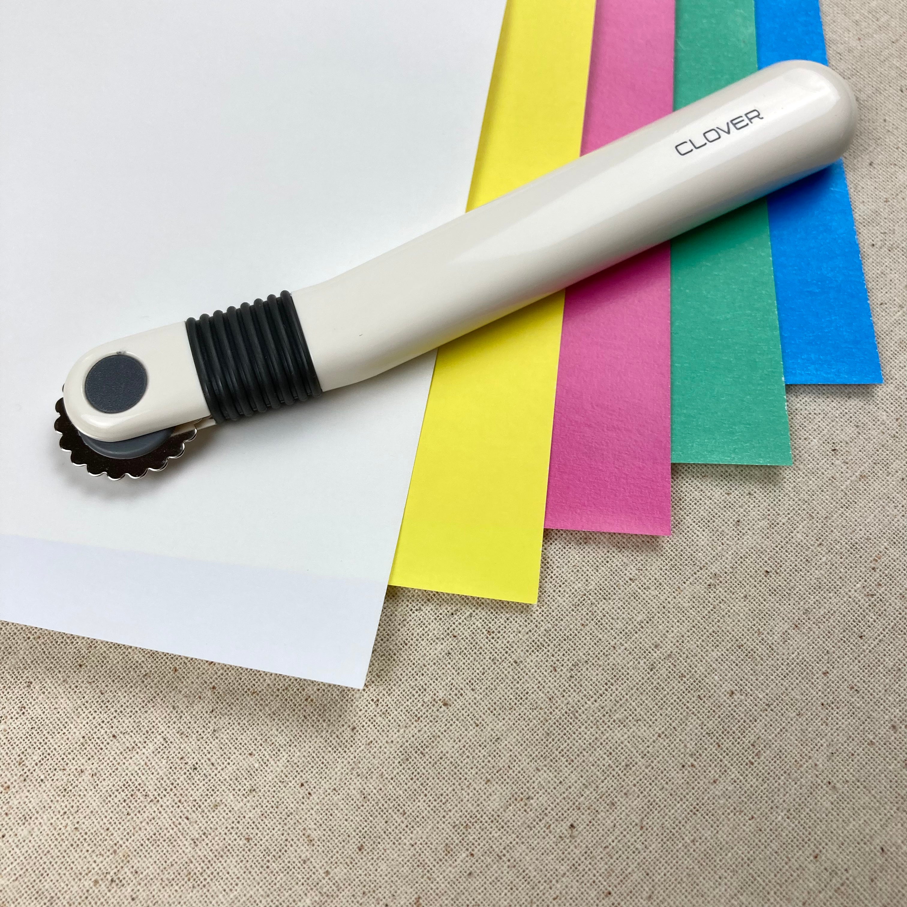Place the fabric on your cutting mat or pad. Then lay the "Clover Chacopy" between the fabric and the pattern. Trace the lines of your pattern with a tracing wheel.