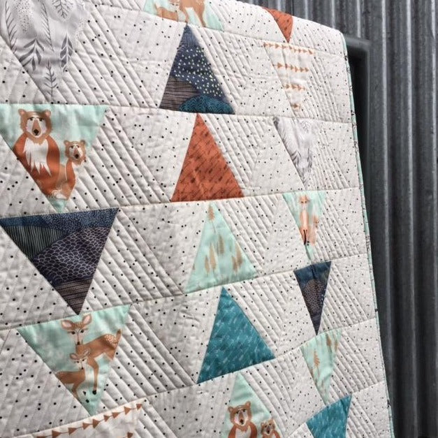 This baby quilt kit is easy to make using a regular 6" X 24" Omnigrid ruler! Adorable 100% cotton prints from Art Gallery Fabrics. Kit includes instructions and all fabric for quilt front including binding.