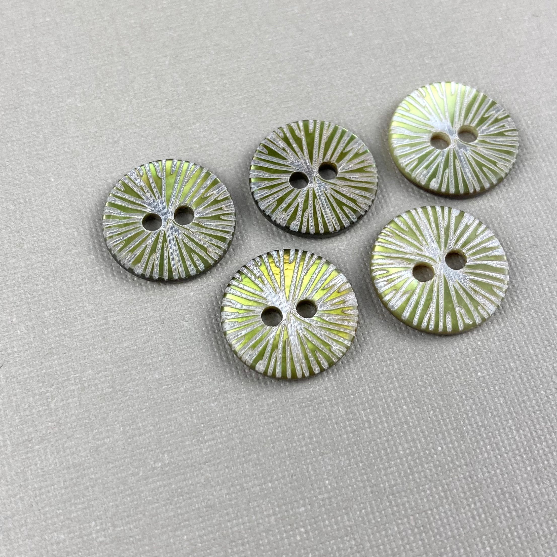 Set of 5 shell buttons with 2 holes