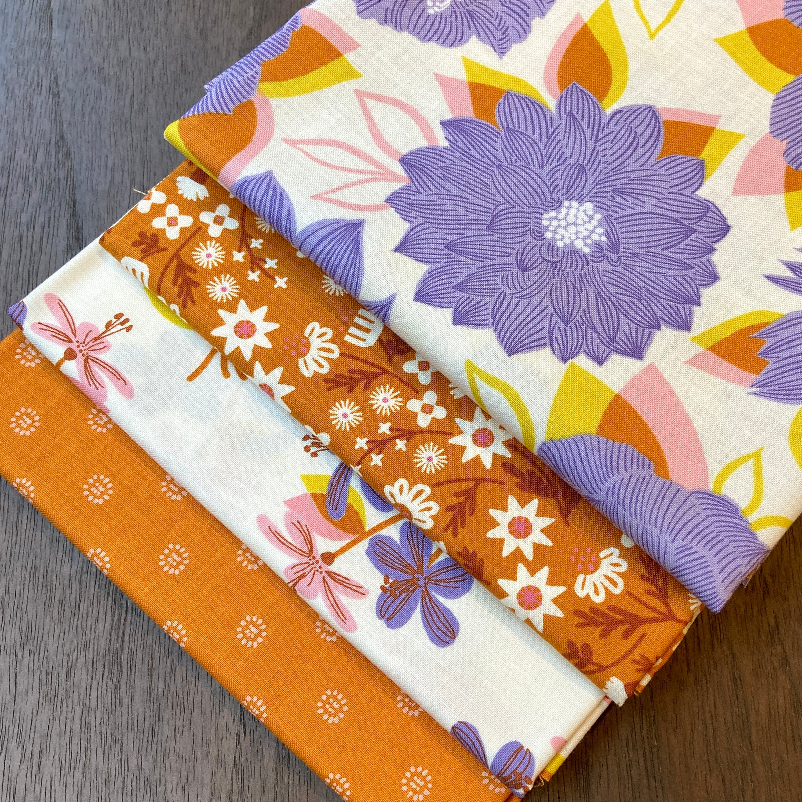 Fat quarter pack includes one fat quarter (20" x 22") each of 4 fabrics in the collection.