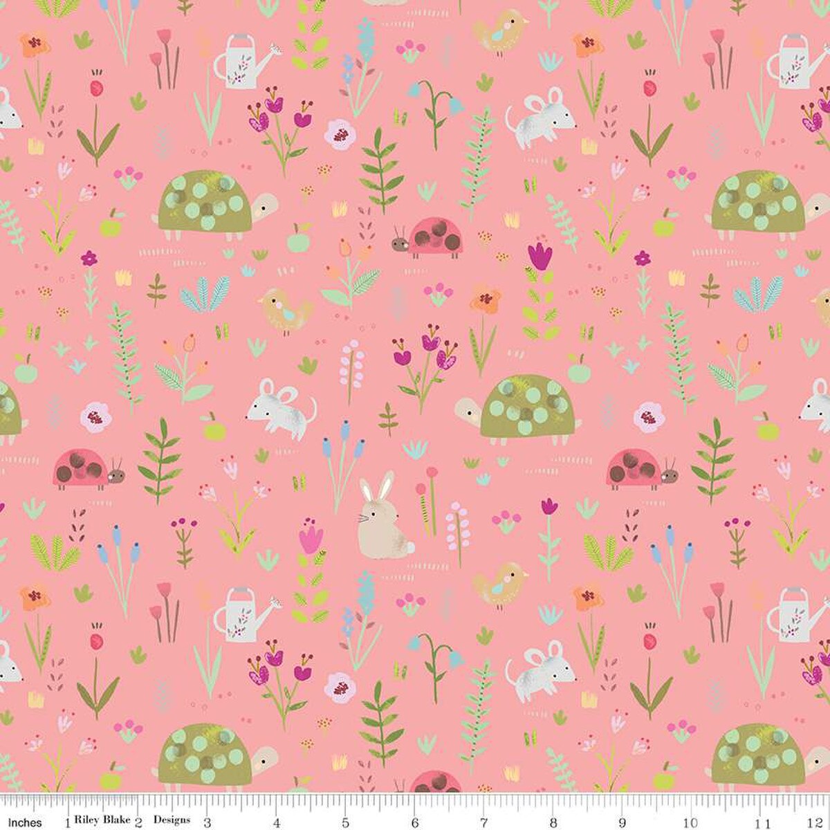 This double napped flannel by the RBD Designs for Riley Blake Designs is great for apparel, blankets, quilts and quilt backs. This print features a gardenful of flowers, rabbits, birds, mice, turtles, ladybugs, and more.