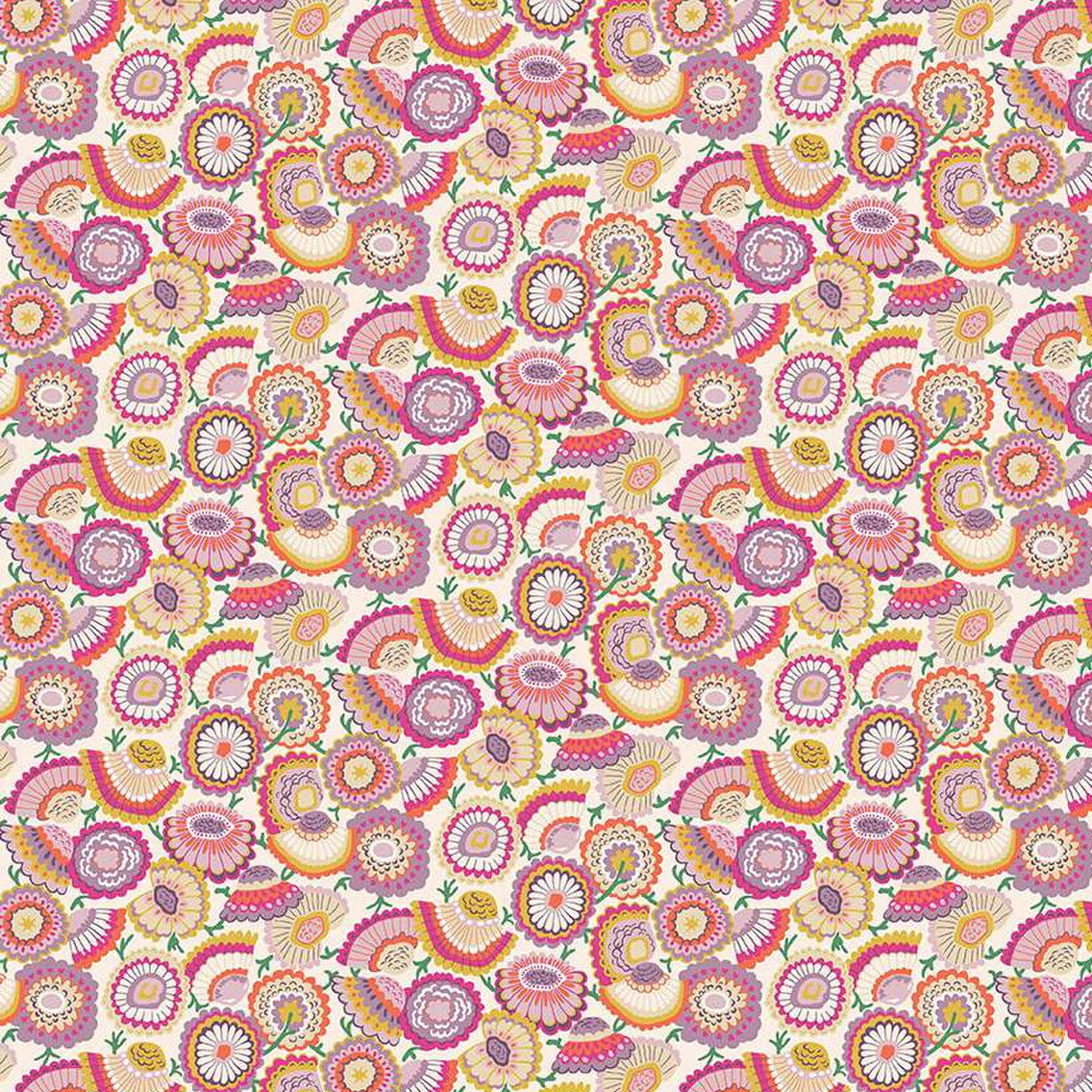 Hand-painted in the Liberty design studio using gouache, Lasenby Bloom is a floral celebration filled with joyous botanical forms. The folding and unfolding of petals mimic a beautifully choreographed dance, showcasing layers of concentric colours in a captivating, ruffled display.