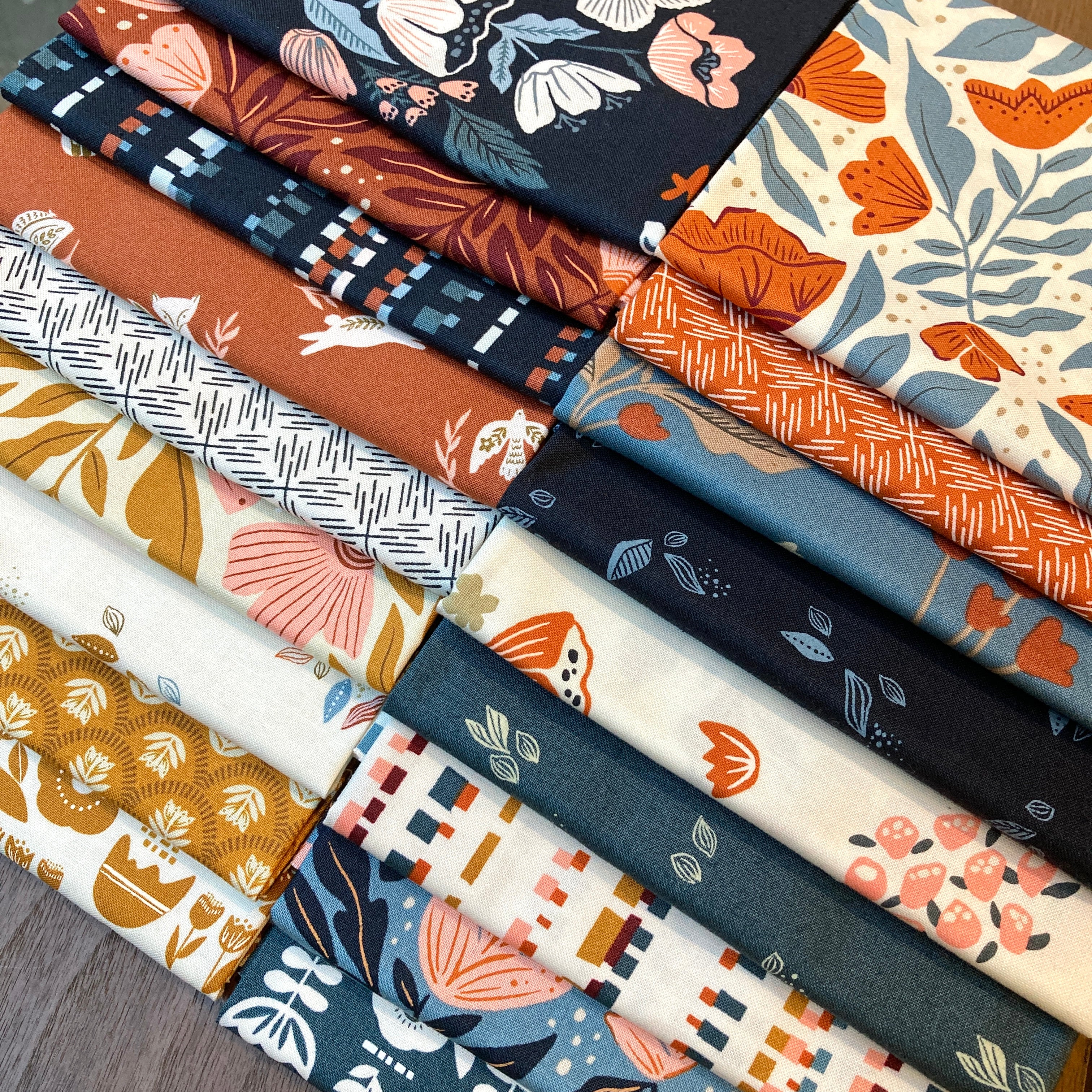 Fat quarter pack includes one fat quarter (20" x 22") each of all 18 fabrics in the collection.
