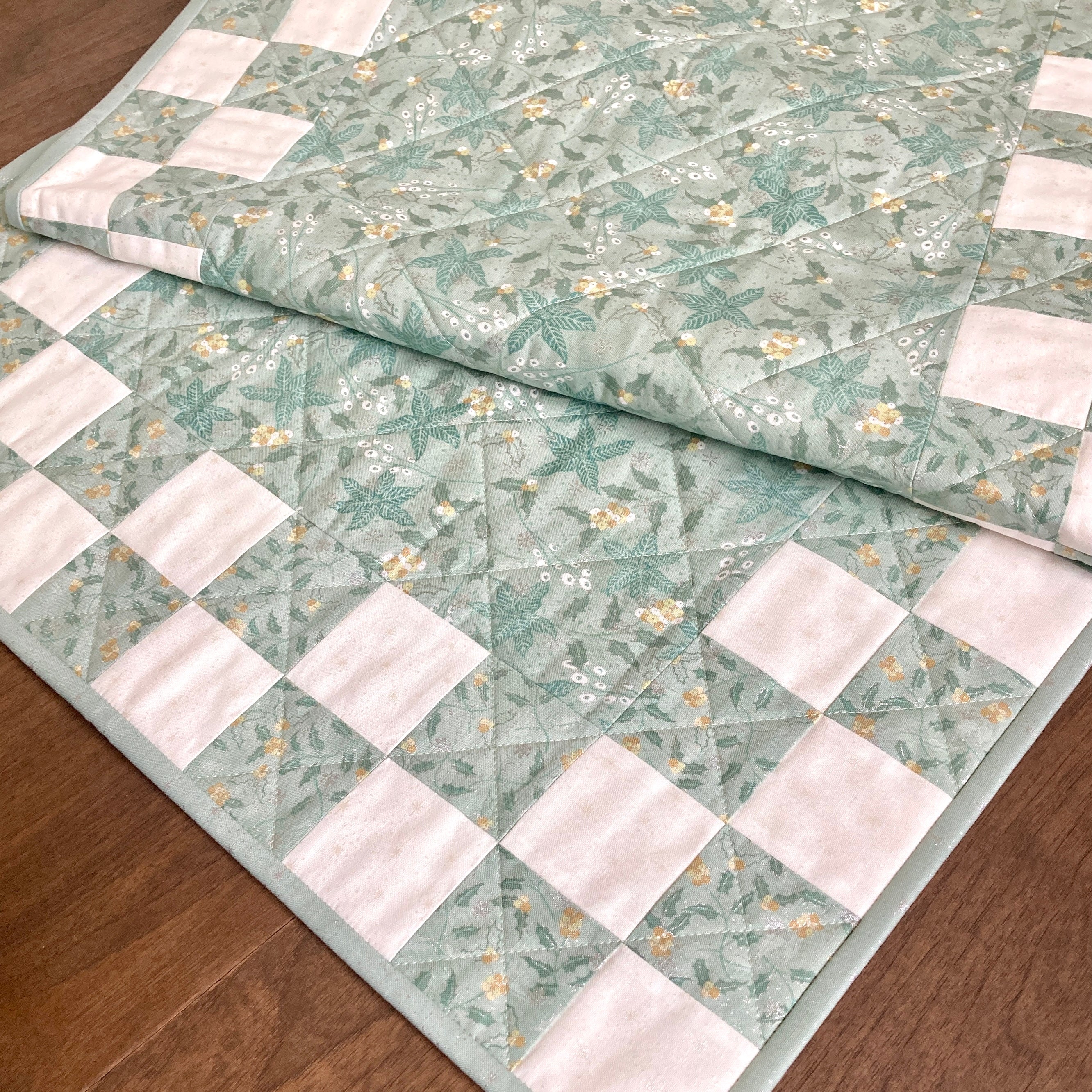 We created this table runner kit our own pattern: the Bella Moon Checkerboard Table Runner pattern.