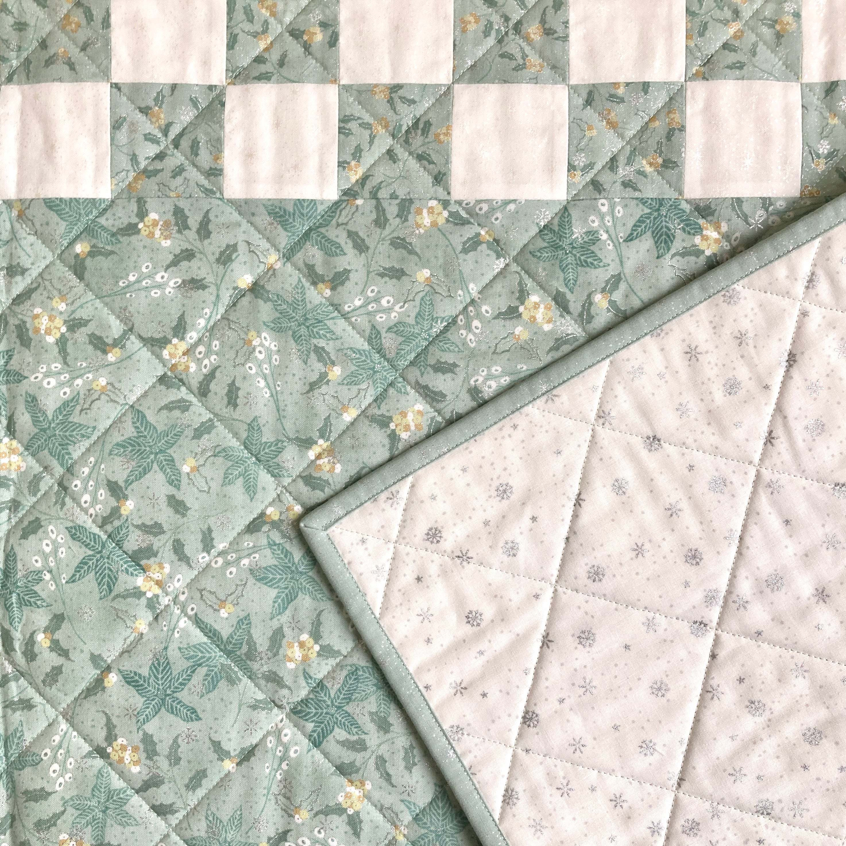 Project requires batting, 1.35m meters of backing fabric, and thread. We backed our runner with We Love Christmas 2025 - Snowflakes: White. We have pre-cut backing pieces available (21" x 53").
