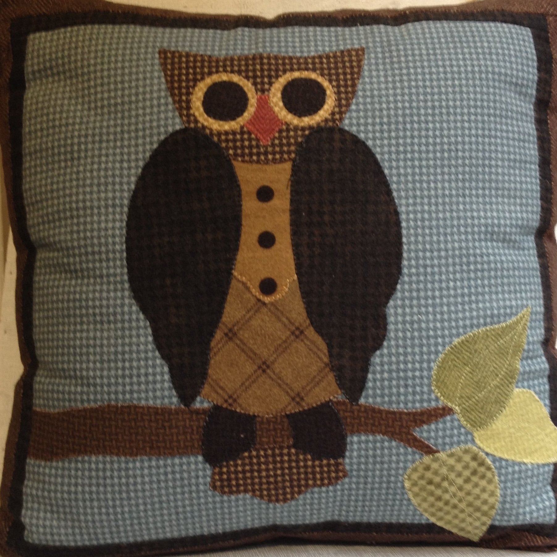 Hanging Out Owl Pillow Kit includes instructions to make this appliqued pillow and all 100% cotton flannel fabric for pillow front and back. Requires fusible web, batting and a 16" pillow form.