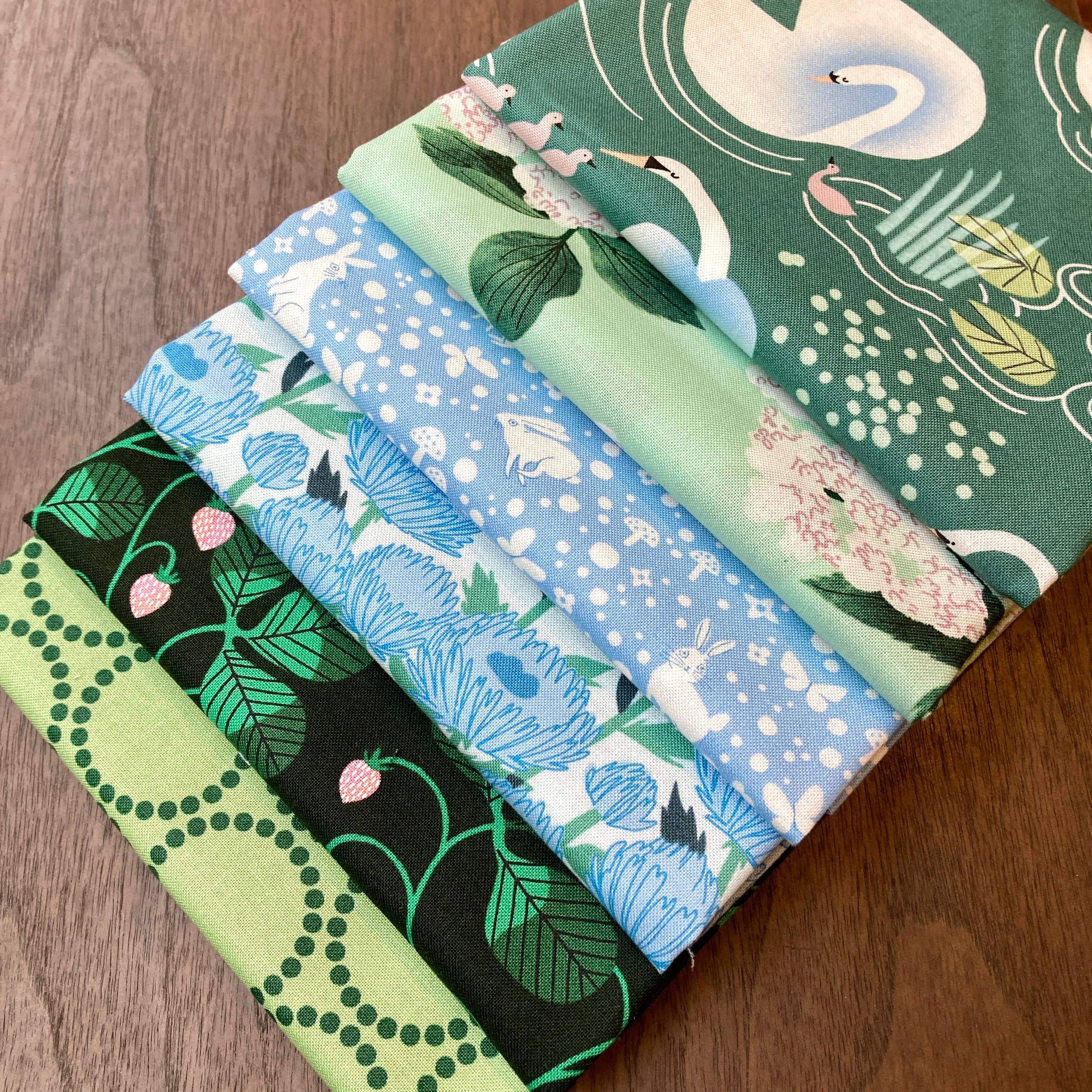 Fat quarter pack includes one fat quarter (20" x 22") each of 6 fabrics in the collection.