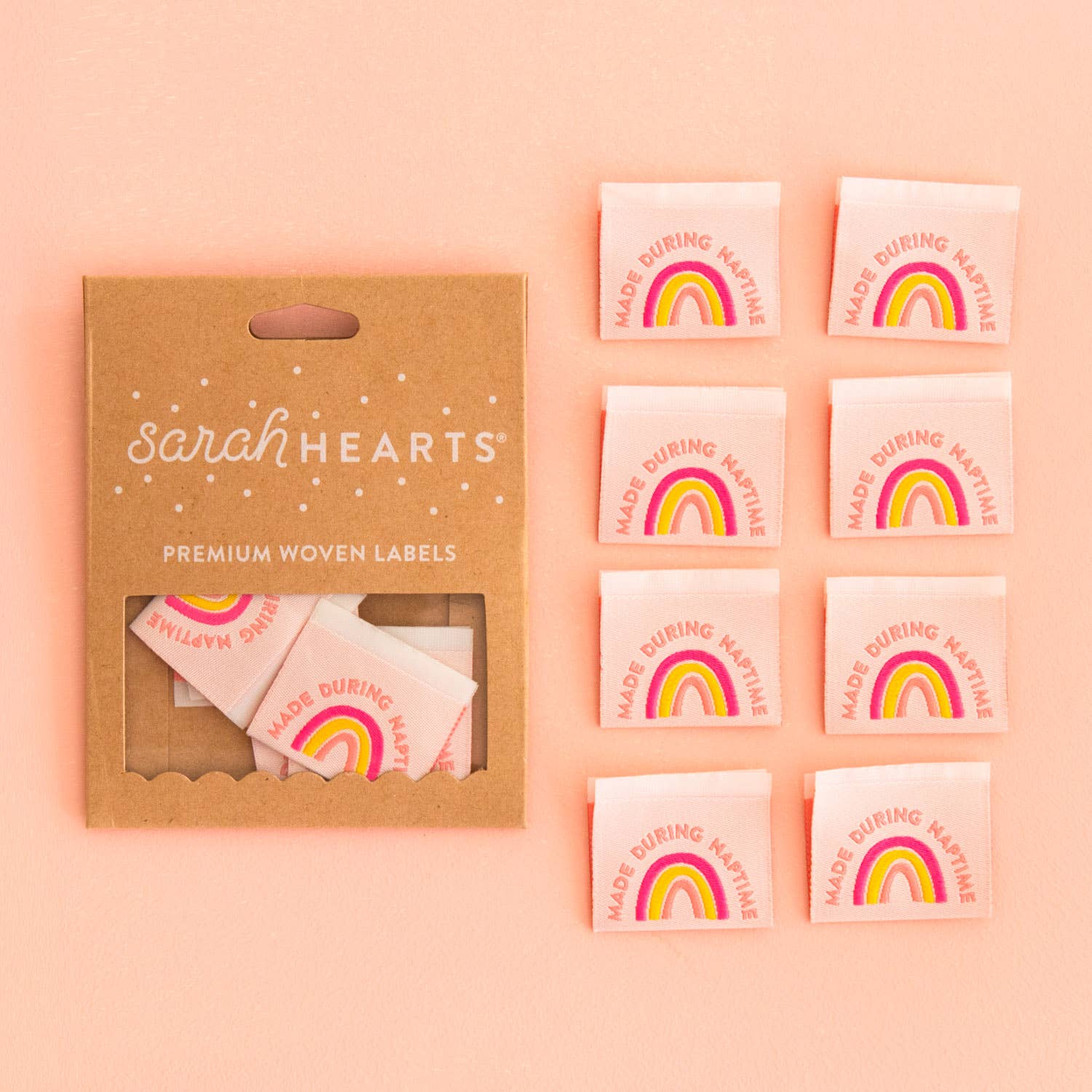 If you are a mama you know how precious those naptime hours are! Here's a label for all the mamas out there who make during naptime—and do a million other things! These high quality woven labels feature pink, coral and yellow thread on a blush background. They are super soft to the touch and never scratchy. The labels are fully washable and can handle the heat of the dryer.