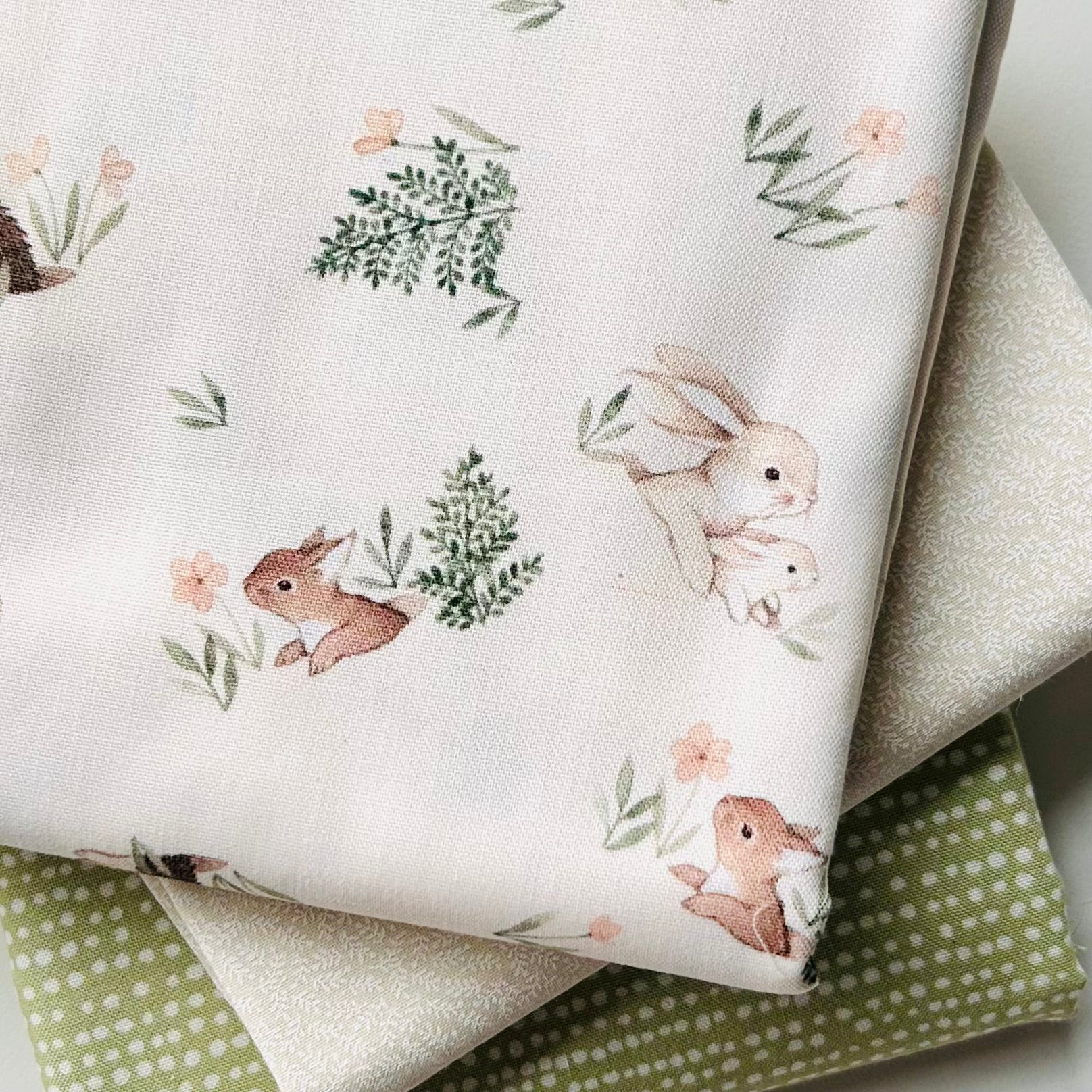 Soft gentle colours! A simple square and four patch design are all thats needed to show off this adorable meadow babies fabric! Kit includes instructions and all fabric for quilt front and binding. Finished size 40 1/2" X 50 1/2"