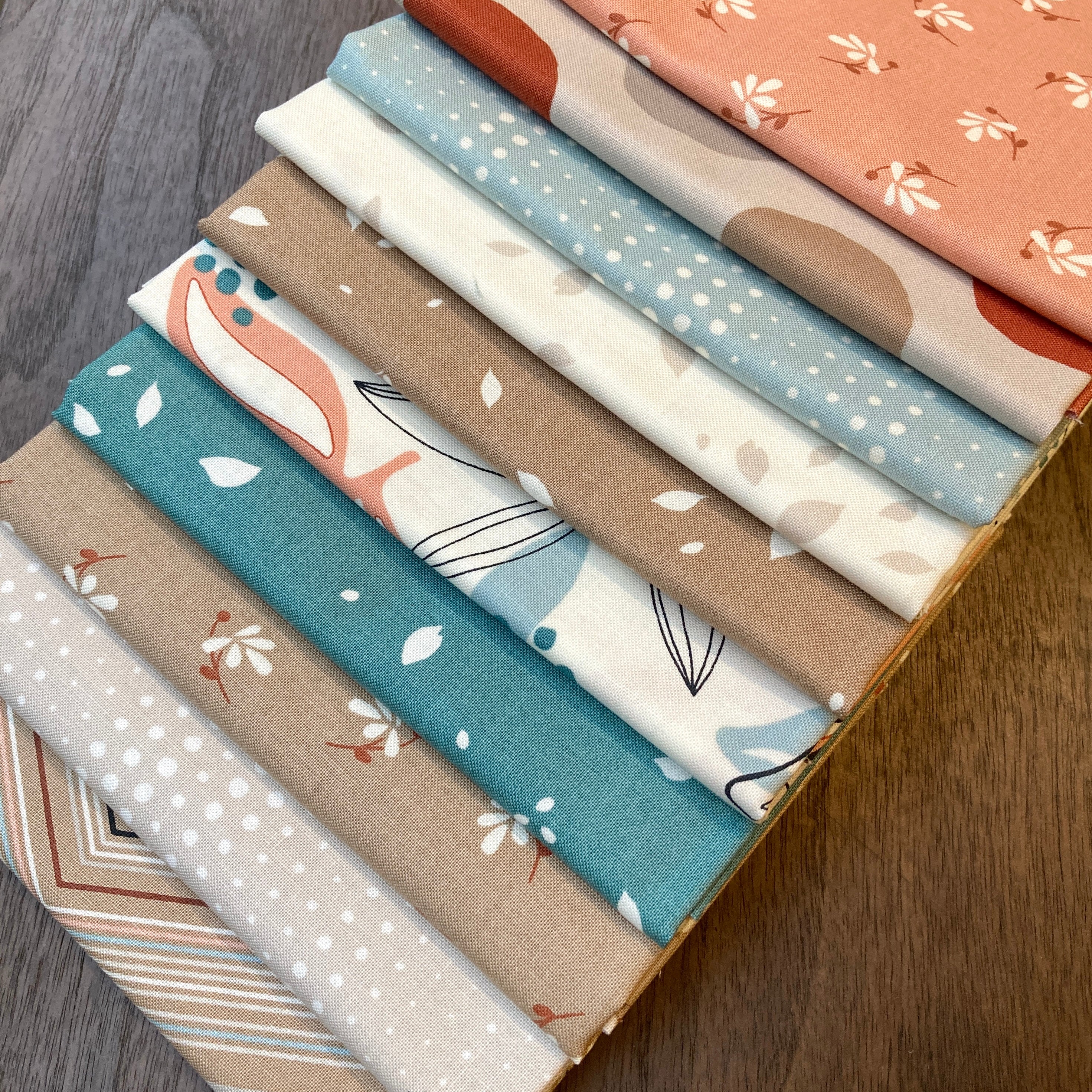 Fat quarter pack includes one fat quarter (20" x 22") each of 10 fabrics in the collection.