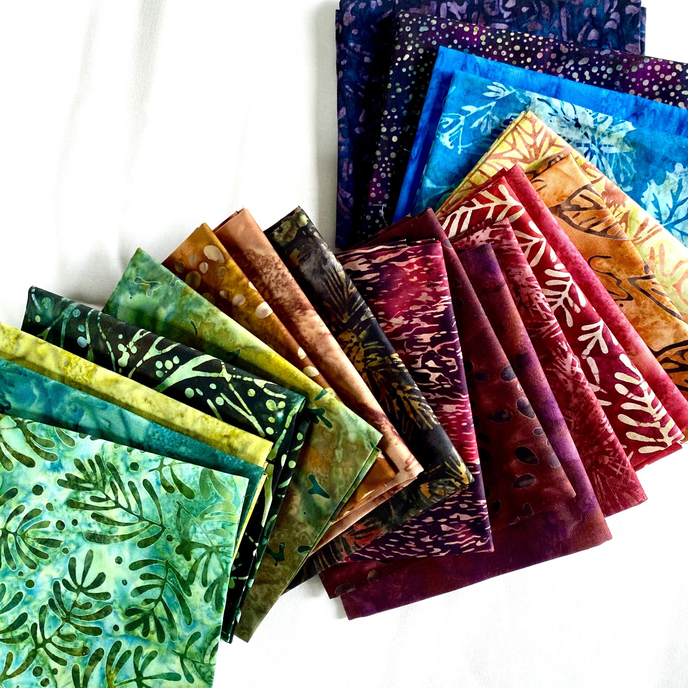 Cream cotton background fabric and a curated collection of twenty batiks to create this very popular quilt!